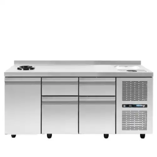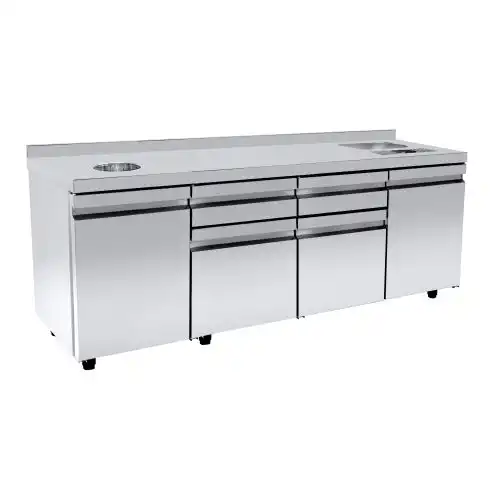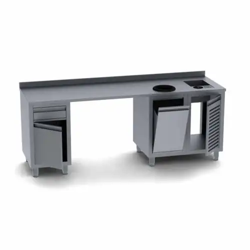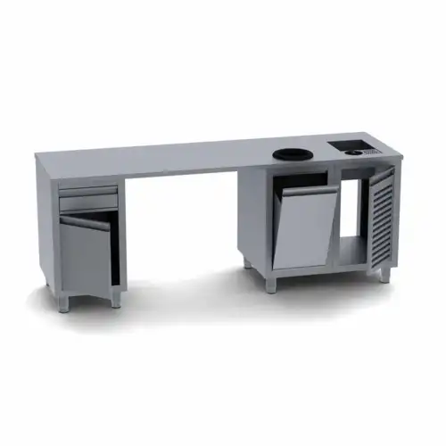 Ανοξείδωτα ερμάρια καφέ (Coffee Stations) με ενσωματωμένες παροχές για καφετέριες, μπαρ και ξενοδοχεία, που προσφέρουν εργονομική οργάνωση του εξοπλισμού barista. Διαθέτουν θέσεις για μύλους, αμπάρια καφέ και παροχές νερού, εξασφαλίζοντας ταχύτητα στο service και κορυφαία υγιεινή στη μαζική εστίαση.
