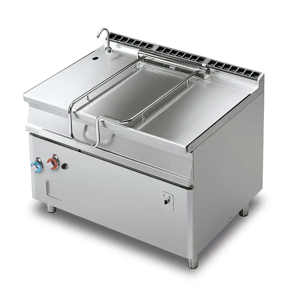 Ανατρεπόμενο τηγάνι αερίου με αυτόματη ανατροπή , χωρητικότητας 120Lt , του εργοστασίου Lotus Ιταλίας.
