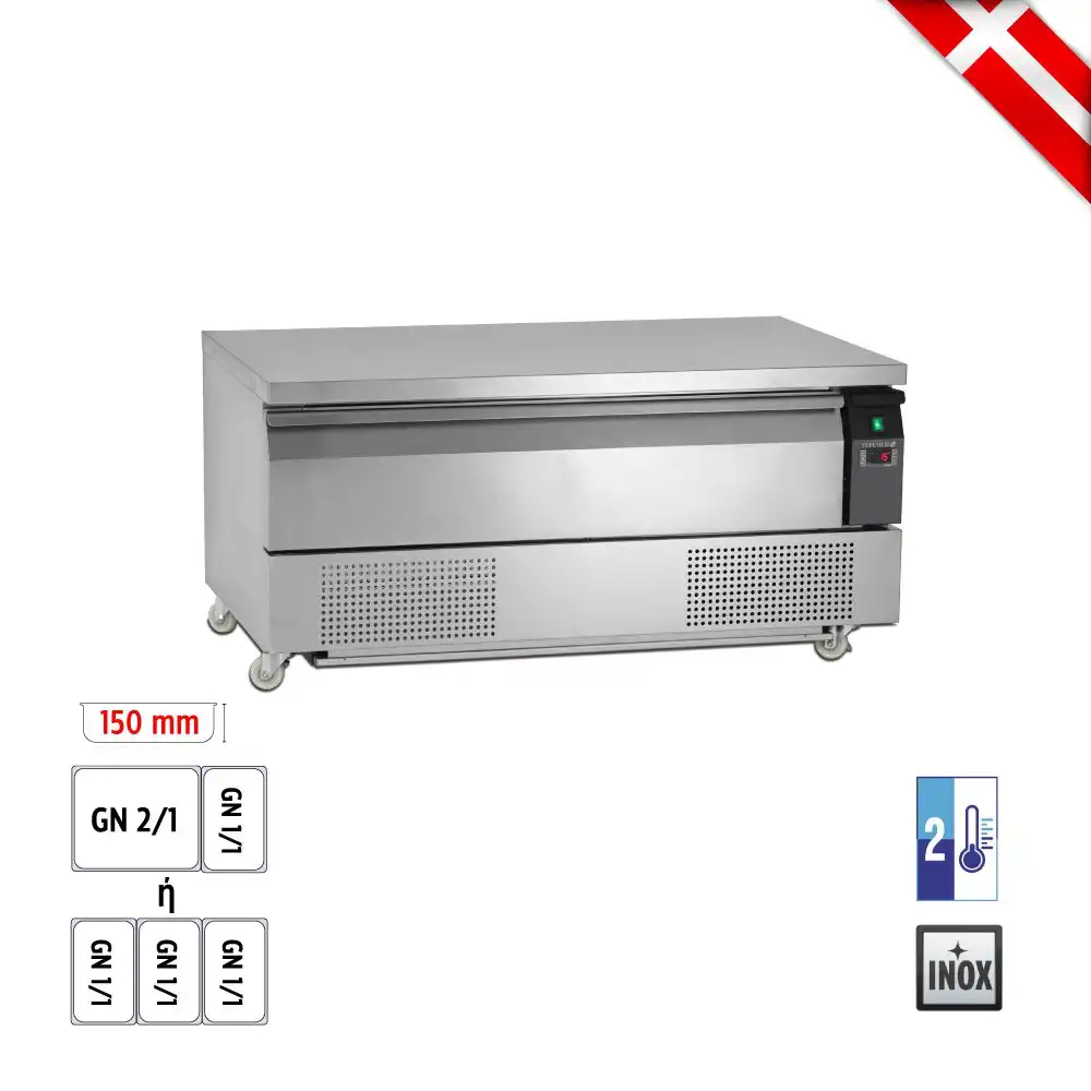 Ανοξείδωτο ψυγείο 2 θερμοκρασιών για 3 GN1/1 με 1 συρτάρι , Tefcold Δανίας. Εύκολη εναλλαγή μεταξύ ψυγείου και καταψύκτη Βεβιασμένη ψύξη για ομοιόμορφη θερμοκρασία Αυτόματη απόψυξη Μεγάλος χώρος αποθήκευσης