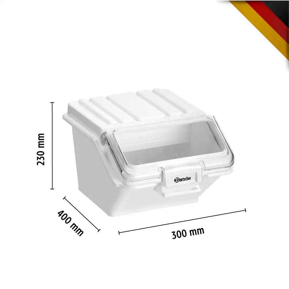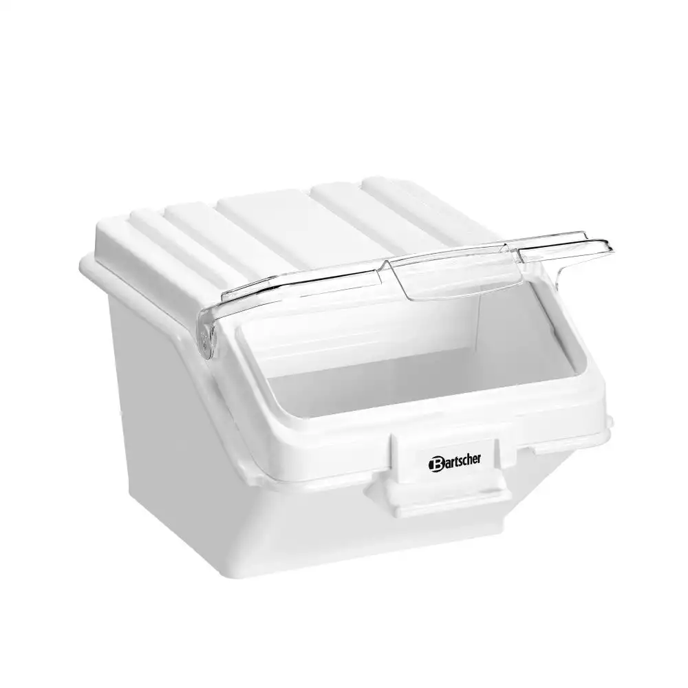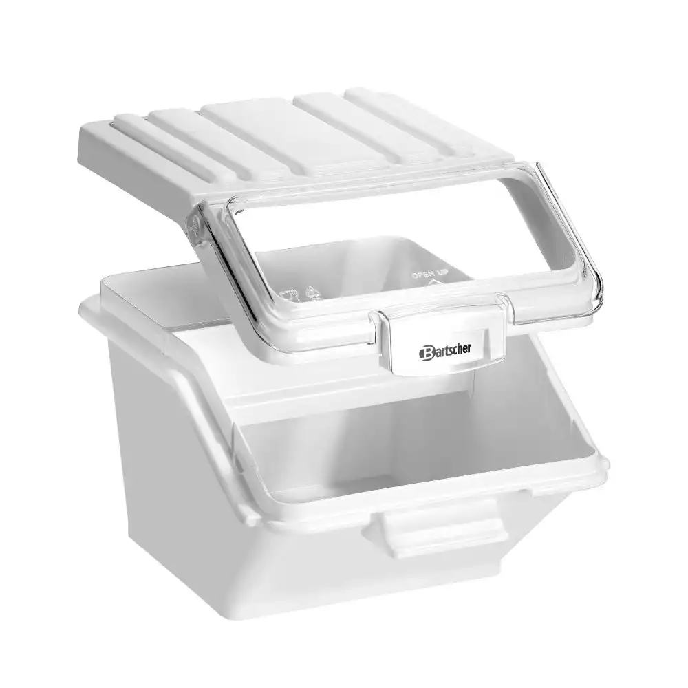 Δοχείο αποθήκευσης (foodsafe) , χωρητικότητας 10 lt , 500384 Bartscher Γερμανίας. Ανθεκτικό & στοιβαζόμενο δοχείο αποθήκευσης για υγιεινό εφοδιασμό διάφορων ειδών δημητριακών, καθώς και μπαχαρικών, ρυζιού ή ζυμαρικών. Το διάφανο καπάκι επιτρέπει γρήγορη επισκόπηση του ξηρού προϊόντος που βρίσκεται στο δοχείο.