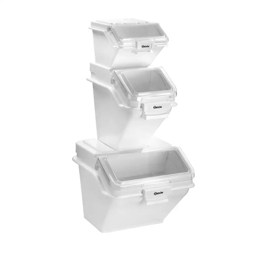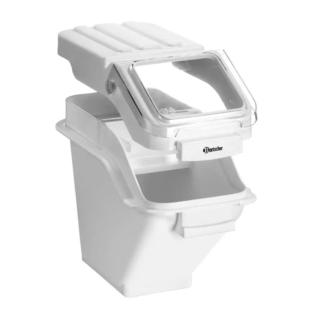 Δοχείο αποθήκευσης (foodsafe) , χωρητικότητας 24 lt , 500386 Bartscher Γερμανίας. Ανθεκτικό & στοιβαζόμενο δοχείο αποθήκευσης για υγιεινό εφοδιασμό διάφορων ειδών δημητριακών, καθώς και μπαχαρικών, ρυζιού ή ζυμαρικών. Το διάφανο καπάκι επιτρέπει γρήγορη επισκόπηση του ξηρού προϊόντος που βρίσκεται στο δοχείο.