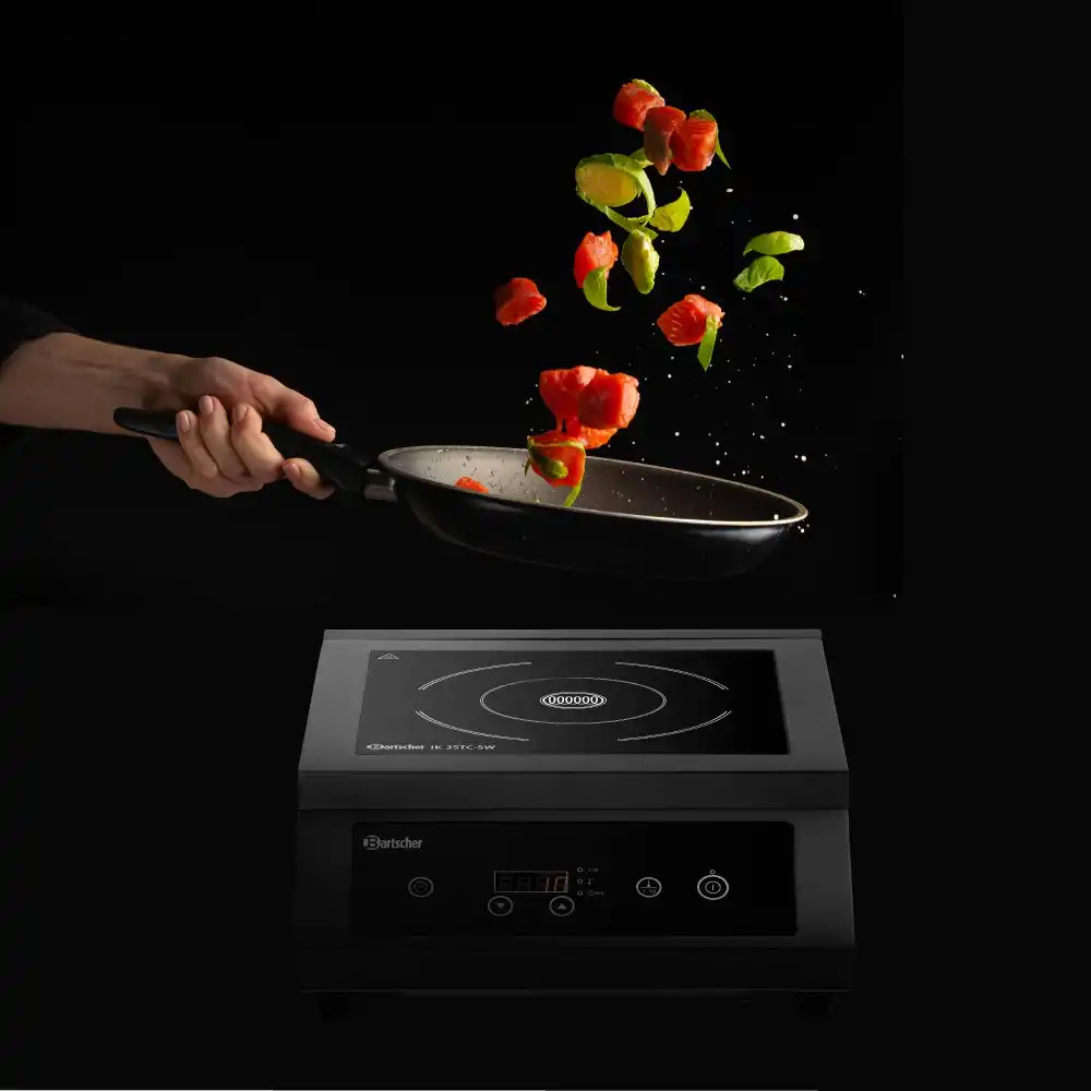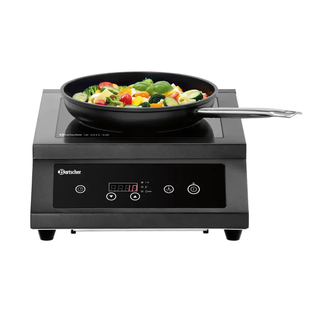 Επαγωγική (induction) ηλεκτρονική εστία ΙΚ 35TC-SW , Bartscher Γερμανίας. Επαγωγική εστία με πρακτικό χρονομετρητή & χειρισμό αφής και μέγιστη απόδοση ισχύος 3500 Watt η οποία μπορεί να ρυθμιστεί κατ΄επιλογή από την περιοχή της θερμοκρασίας ή από την απόδοση ισχύος.