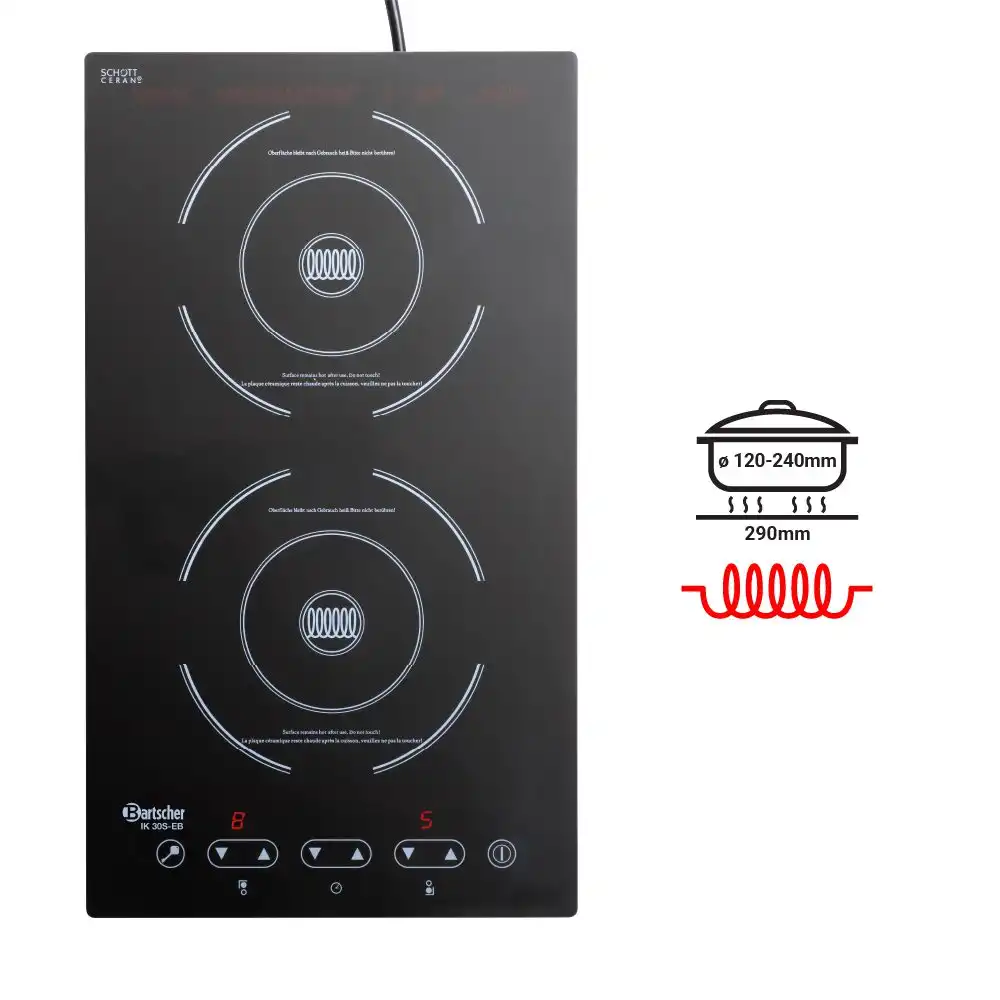 Εντοιχιζόμενη επαγωγική (induction) ηλεκτρονική εστία διπλή IK 30S-EB, Bartscher Γερμανίας. Επαγωγική εστία με δυνατότητα εντοιχισμού, εξοικονόμηση χώρου, εστίες που βρίσκονται η μία πίσω από την άλλη και μια ενιαία επιφάνεια Schott Ceran.