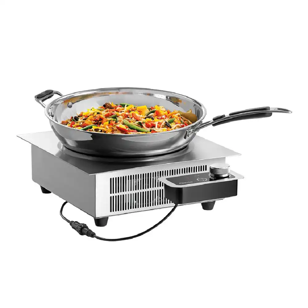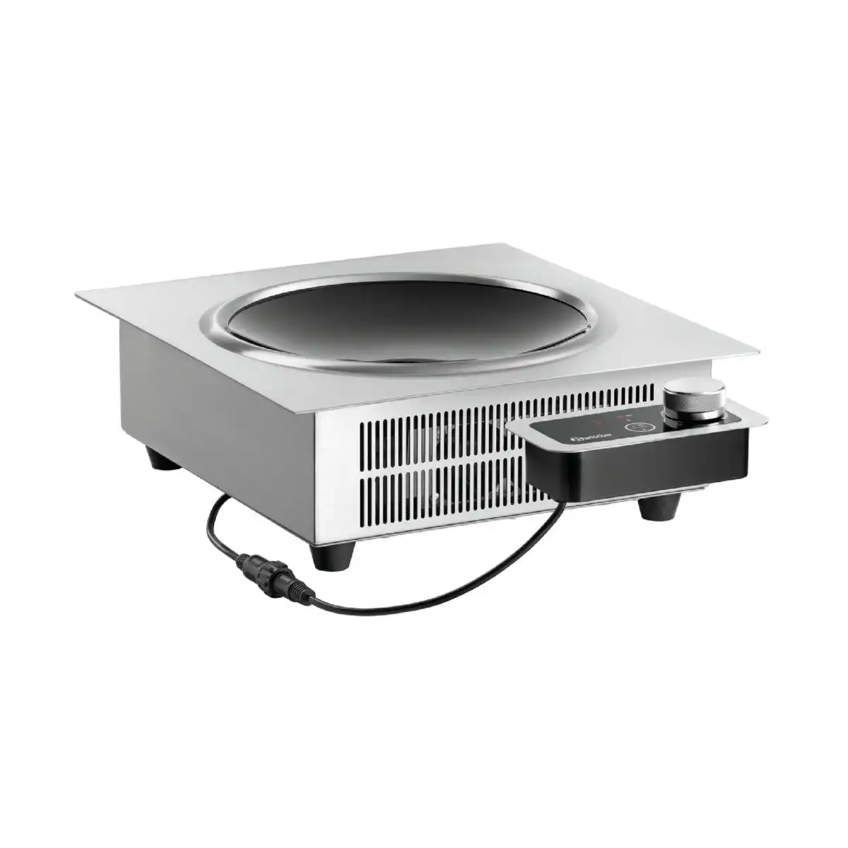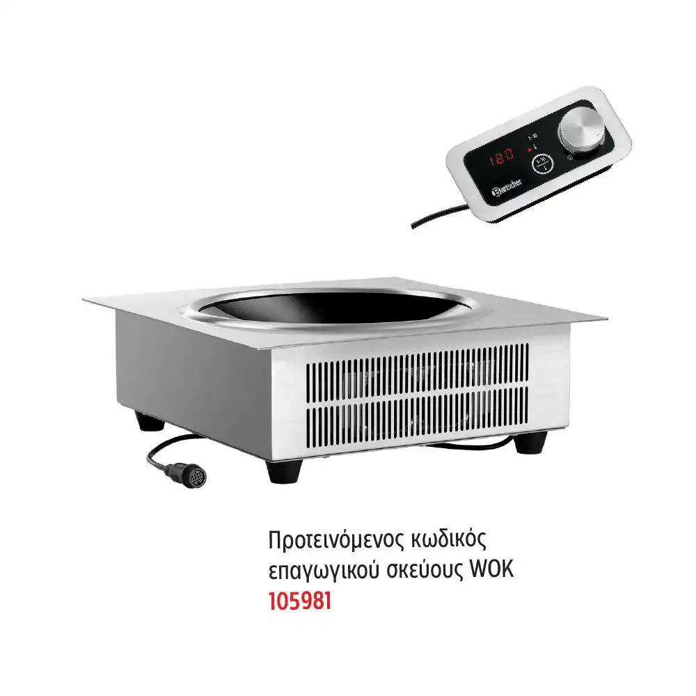 Επαγωγική εστία ηλεκτρονική WOK IW35-EB, Bartscher Γερμανίας. Το επαγωγικό γουόκ μπορεί να ενσωματωθεί σε πλάκες τραπεζιού και πλάκες εργασίας και προσφέρει έτσι ιδανικό ύψος εργασίας. Το ξεχωριστό πεδίο χειρισμού καθιστά δυνατή μια αδιαβάθμητη ρύθμιση από 60 έως 240 °C. Εναλλακτικά υπάρχουν 10 βαθμίδες απόδοσης προς επιλογή.