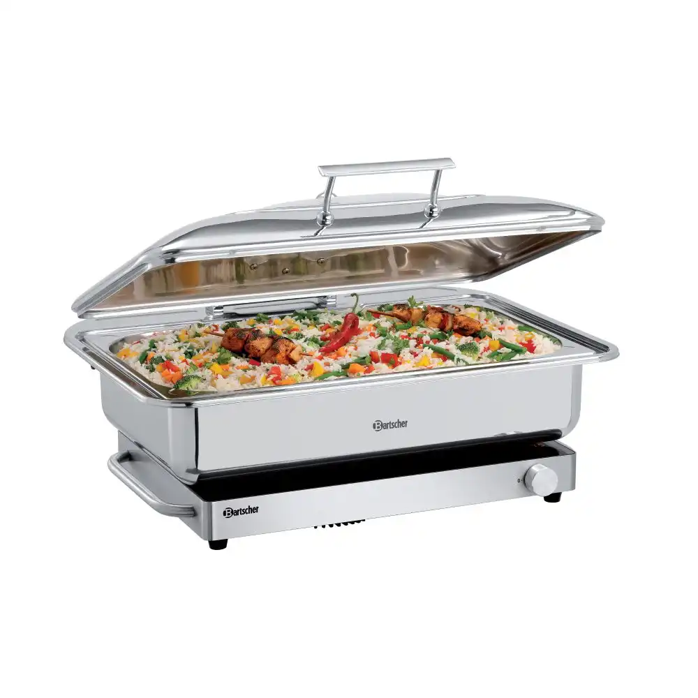 Επαγωγική θερμαινόμενη επιφάνεια 530mm , IW10 Bartscher Γερμανίας. Τα φαγητά μπορούν να διατηρηθούν εύκολα ζεστά σε κατσαρόλες, τηγάνια, καθώς και Chafing Dishes επαγωγικής θέρμανσης. Ιδανική για μπουφέδες , είτε στον τομέα του Front Cooking είτε σε κέτερινγκ & επαγγελματικές κουζίνες.