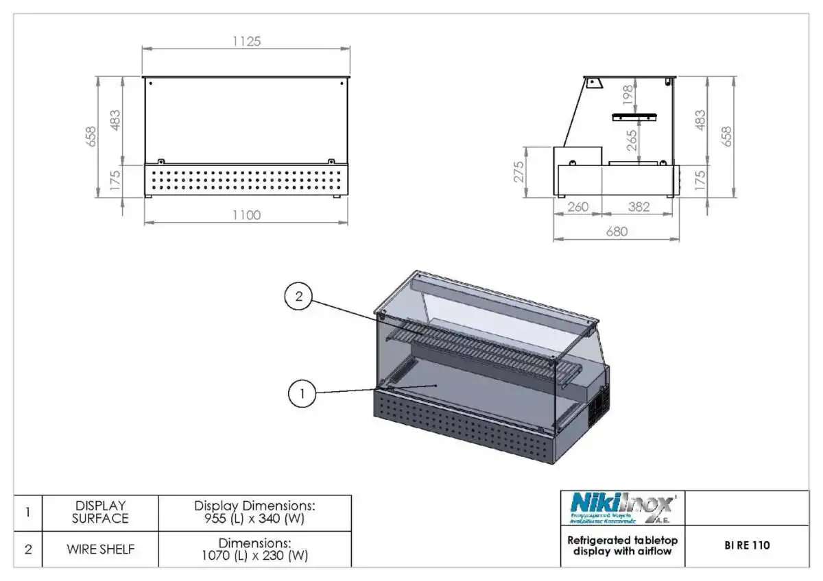 Επιτραπέζια βιτρίνα ψυχόμενη με αέρα BI RE 110 (B0BI.68110R)