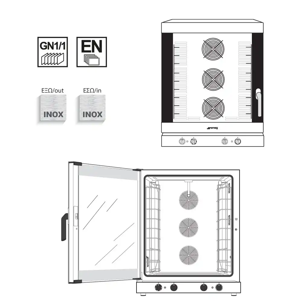 | Χωρητικότητα | 10 λαμαρίνες (600×400) ή GN 1/1 |