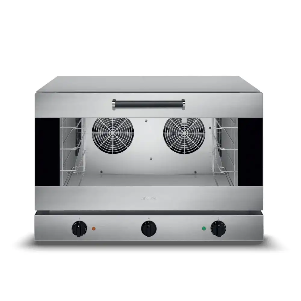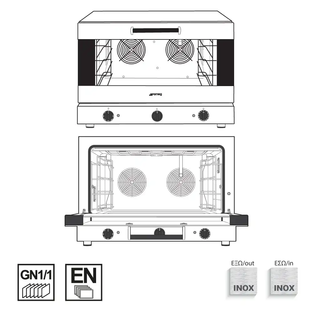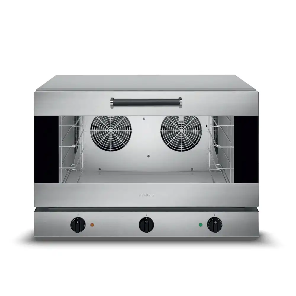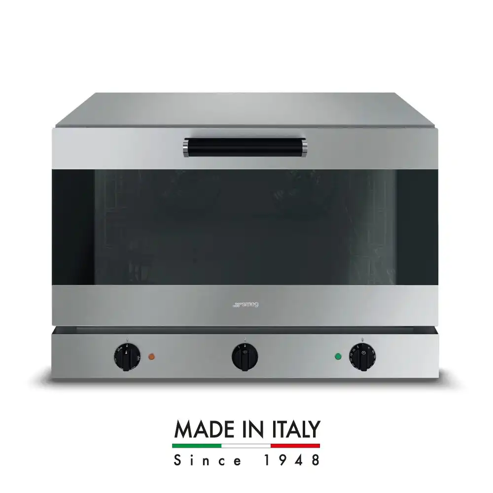 Κυκλοθερμικός φούρνος με υγραντήρα απ’ευθείας ψεκασμού, χωρητικότητας 4 λαμαρινών (600x400mm) του εργοστασίου Smeg Ιταλίας. Λειτουργίες : Αερόθερμο Ψήσιμο & Υγραντήρας