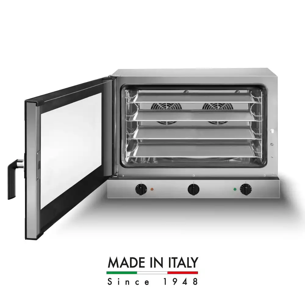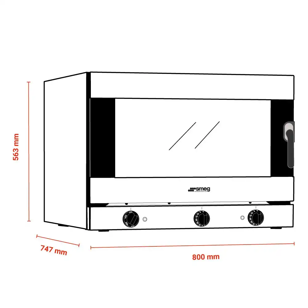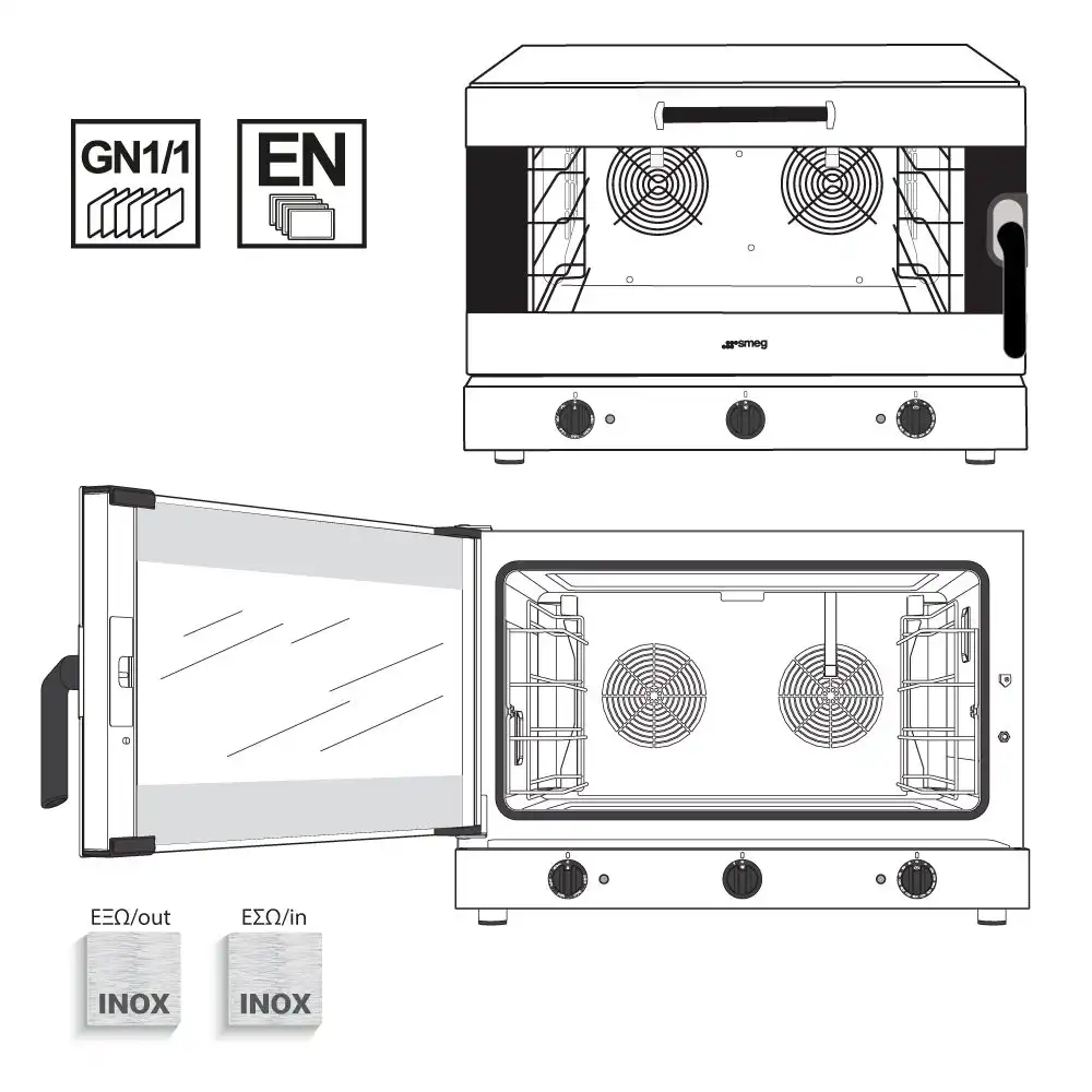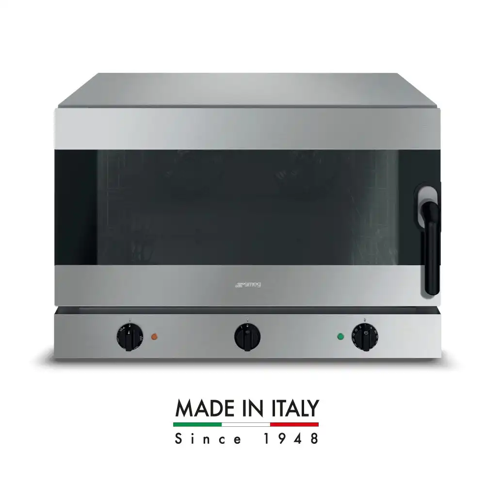 Κυκλοθερμικός φούρνος με υγραντήρα απ’ευθείας ψεκασμού, χωρητικότητας 4 λαμαρινών (600x400mm)του εργοστασίου Smeg Ιταλίας. Λειτουργίες : Αερόθερμο Ψήσιμο & Υγραντήρας (άνω των 150ºC)