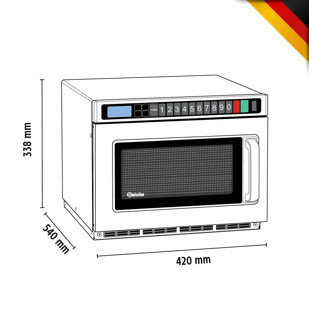 Φούρνος μικροκυμάτων με 2 magnetrons & κεραμική πλάκα βάσης , χωρητικότητας 18 lt , 18180D , Bartscher Γερμανίας. Στοιβαζόμενος φούρνος μικροκυμάτων με 1800 Watt, 2 λυχνίες magnetron, χρονομετρητή και 20 ρυθμιζόμενα προγράμματα. Ο χώρος μαγειρέματος 18 λίτρων διαθέτει μια υψηλής ποιότητας κεραμική πλάκα βάσης. Λειτουργίες : Απόψυξη – Θέρμανση