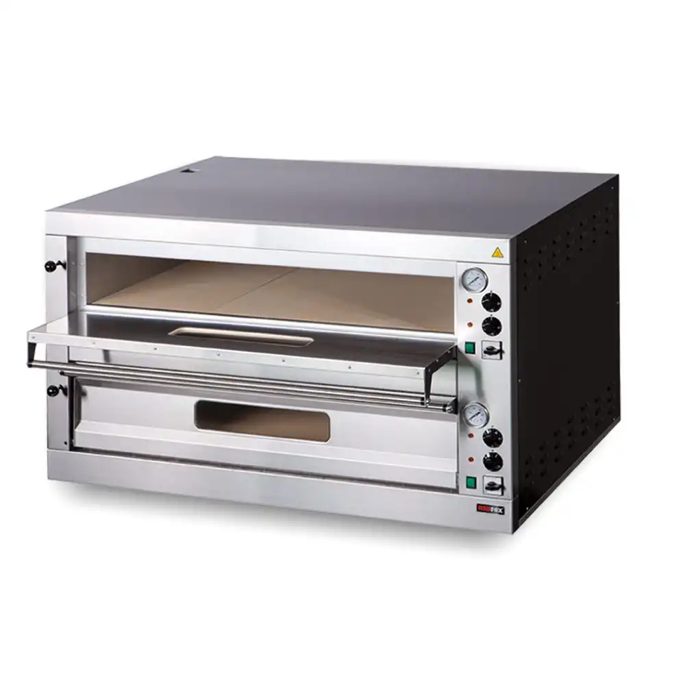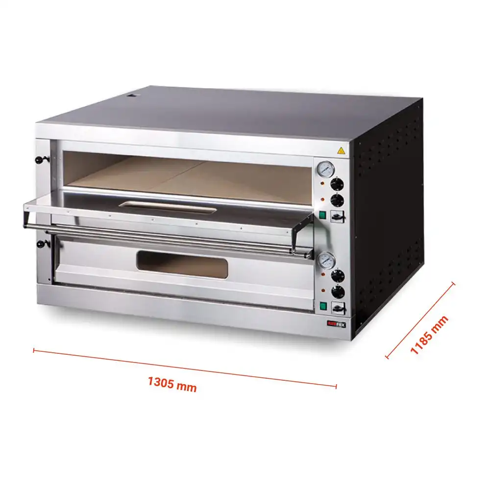 Φούρνος πίτσας διόροφος στενός , με πυρίμαχη πλάκα κάτω πάχους 14 mm, δεκαοκτώ θέσεων (18 x Ø33cm) , του εργοστασίου Redfox.