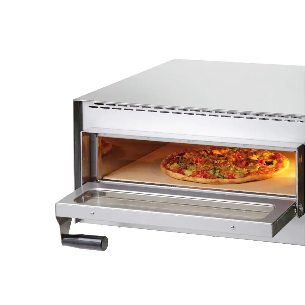 Φούρνος πίτσας, με πυρίμαχη πλάκα κάτω , μιας θέσης Ø35cm, του εργοστασίου Redfox. Ιδανικός για φρέσκια πίτσα & snacks.