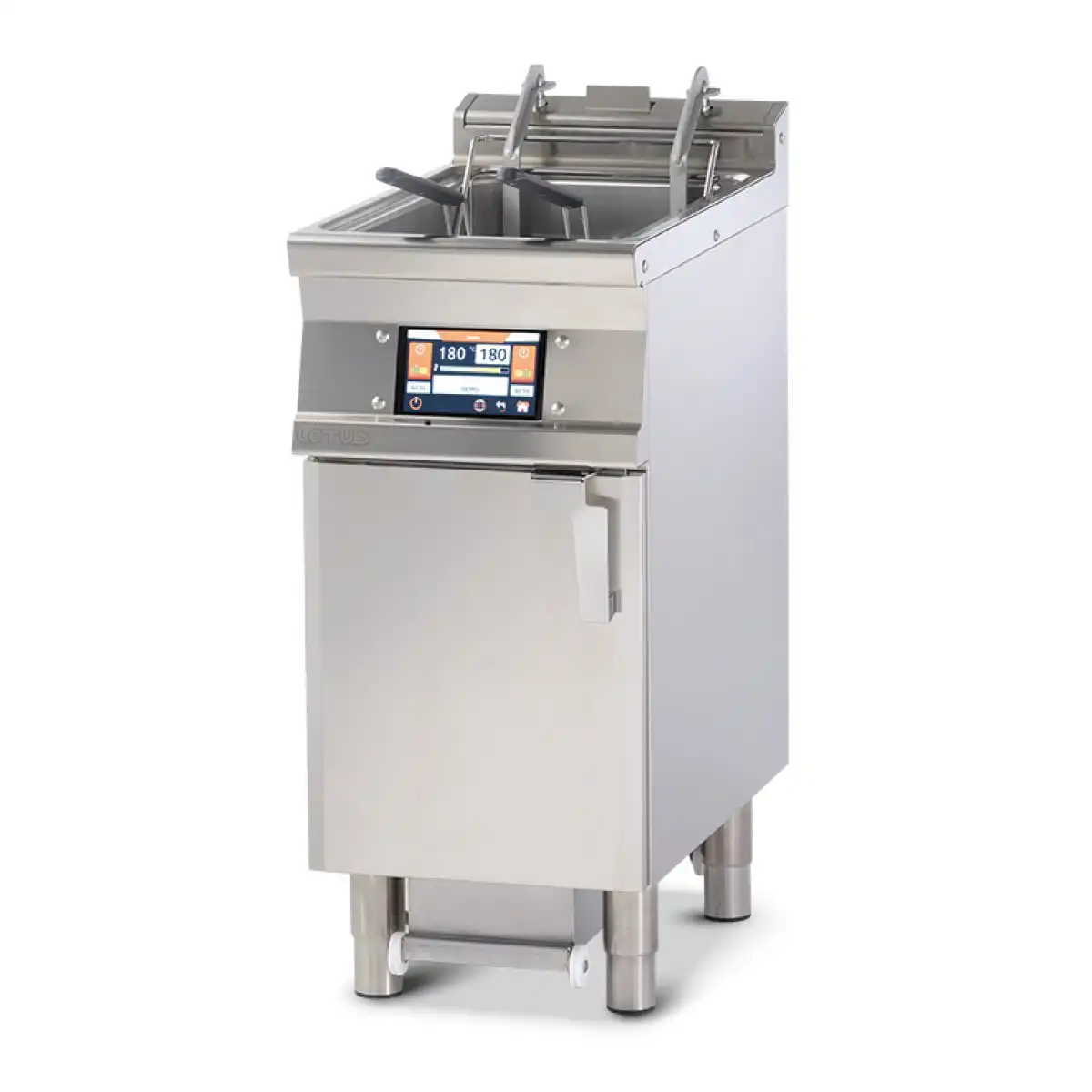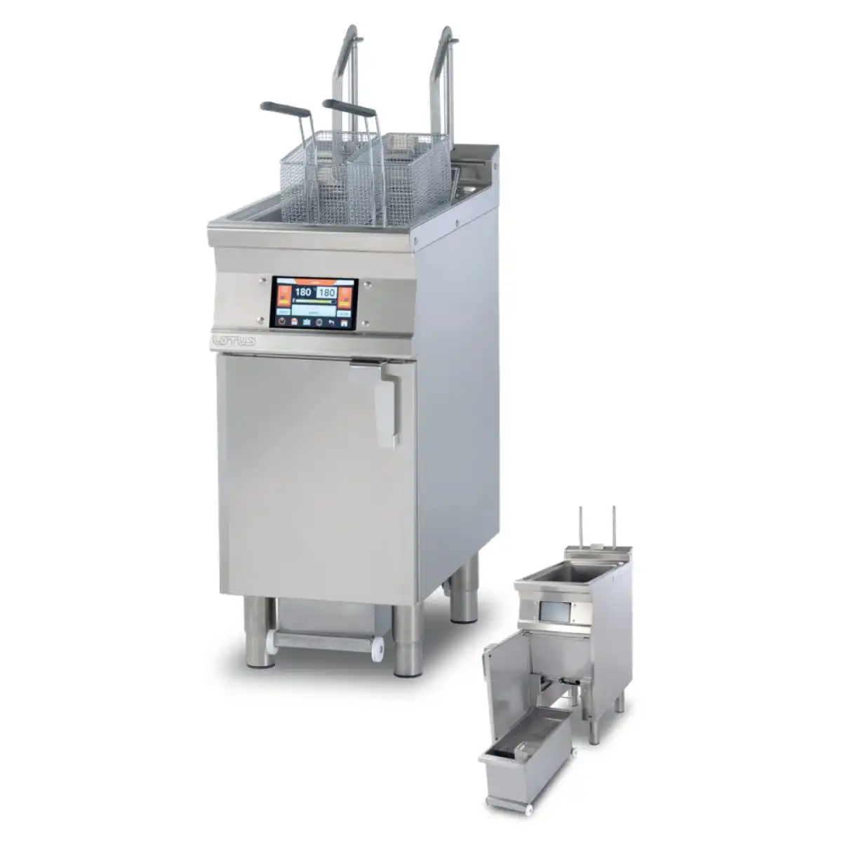 Αυτόματη ηλεκτρική φριτέζα με οθόνη touch 7΄΄ , του εργοστασίου Lotus. Διατήρηση θερμοκρασίας στους 110°C ή προθέρμανση στους 160°C με ή χωρίς λιώσιμο μαγειρικού λίπους (λειτουργία Melting) Δυνατότητα εισαγωγής στην μνήμη έως 100 προγραμμάτων Αισθητήριο πλήρωσης & μέγιστου επιπέδου φόρτωσης λαδιού Αντλία φιλτραρίσματος λαδιού σε θερμοκρασία έως 180°C (αποφεύγουμε τα κενά χρόνου κατά τη διάρκεια της βάρδιας)