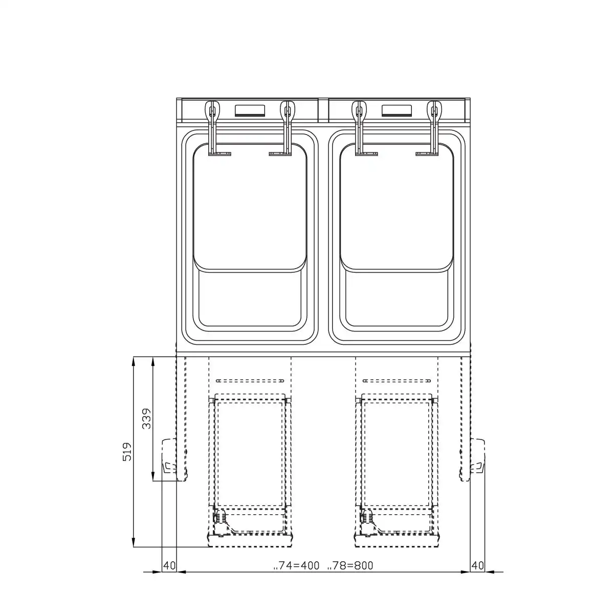| Διαστάσεις καλαθιών | (2x) 135x290x210(h)mm |