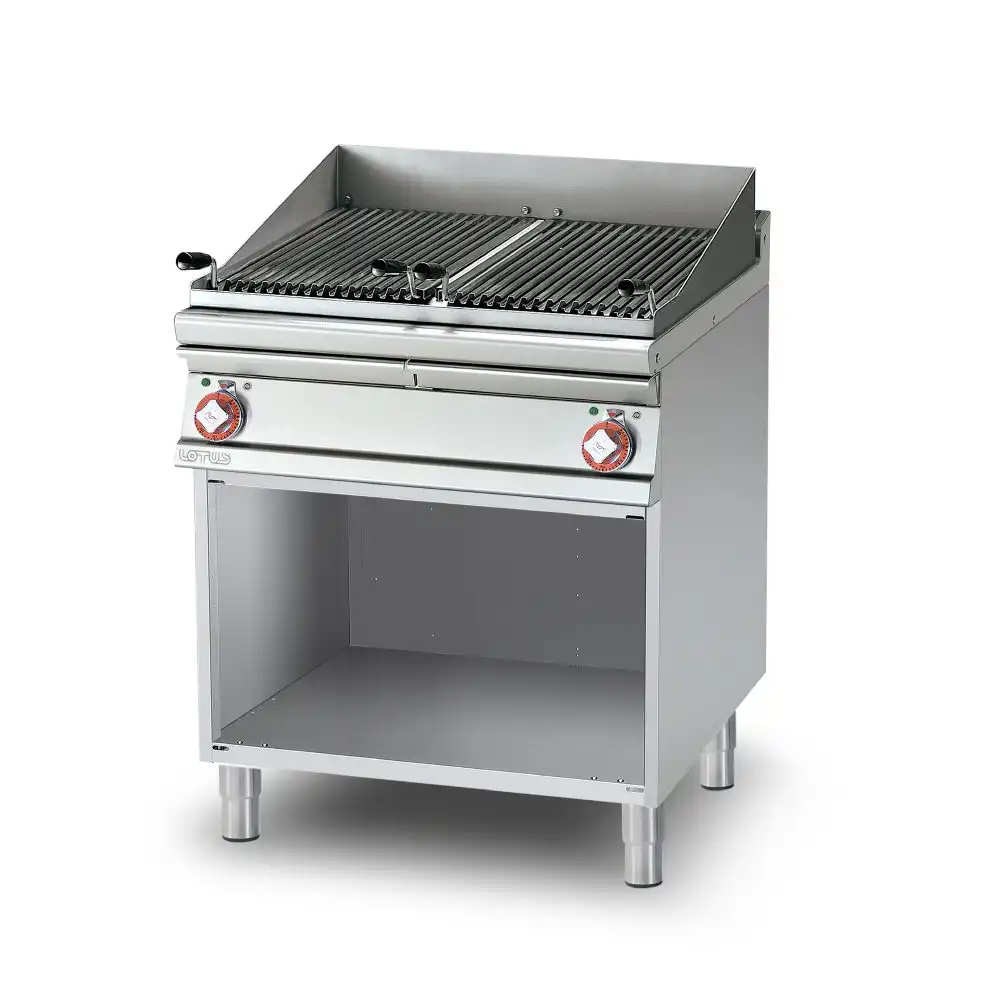 Γκριλιέρα ηλεκτρική διπλή επιδαπέδια , του εργοστασίου Lotus Ιταλίας. Κατασκευασμένο με χρήση ανοξείδωτου χάλυβα ποιότητας (CrNi 18/10 AISI 304) , με διακόπτες αδιάβροχης ποιότητας (IPX5).