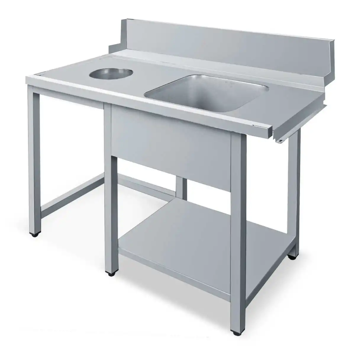 Κατασκευασμένο από ανοξείδωτο χάλυβα Υποδοχές για επαγγελματικό πλυντήριο Τρύπα για σκουπίδια Χώρος για αμπάρι ή κάδο Γούρνα διάστασης 50χ40 cm