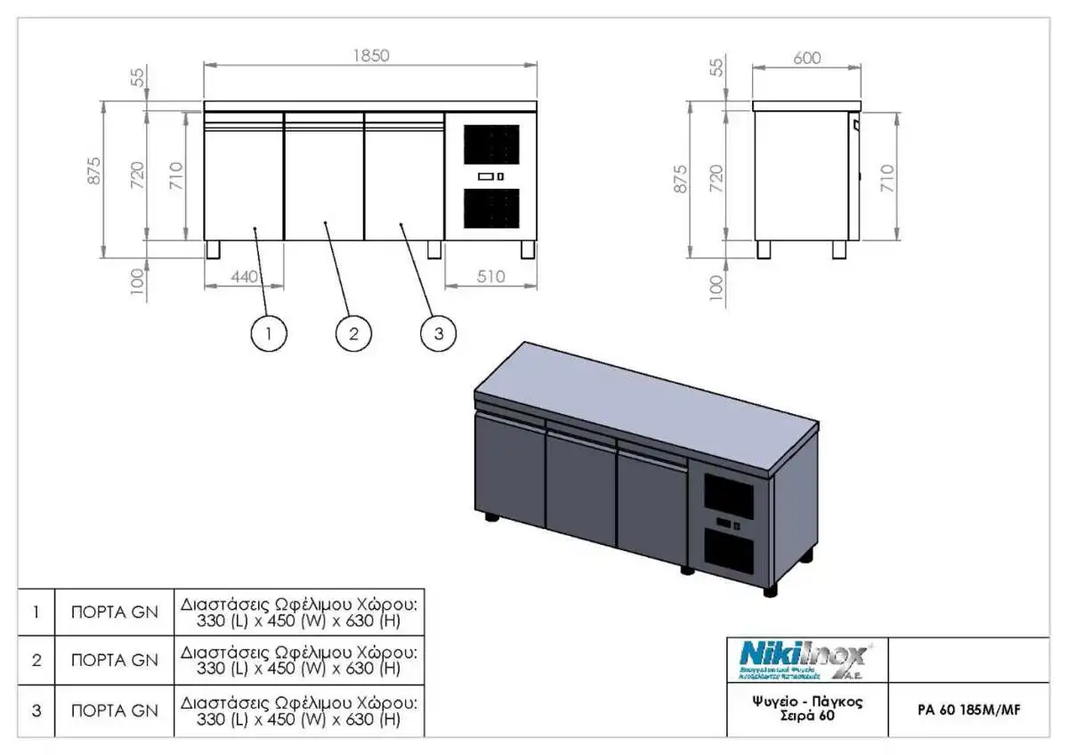 Ο επαγγελματικός ανοξείδωτος πάγκος-ψυγείο PA 60 185M αποτελεί την ιδανική επιλογή για κάθε σύγχρονη κουζίνα που απαιτεί αποδοτική αποθήκευση και διατήρηση τροφίμων.