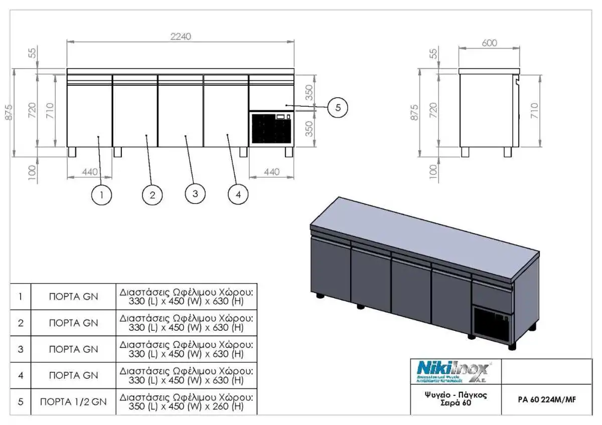 Ο επαγγελματικός ανοξείδωτος πάγκος ψυγείο PA 60 224Μ είναι η ιδανική λύση για κάθε επαγγελματία που αναζητά ποιότητα και λειτουργικότητα στον χώρο εργασίας του.
