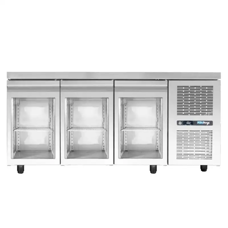 Διαθέτει τρεις γυάλινες πόρτες, που εξασφαλίζουν μεγάλη χωρητικότητα και πρακτικότητα. Η υποδοχή λεκάνης GN 1/1 διευκολύνουν την τακτοποίηση των υλικών σας.
