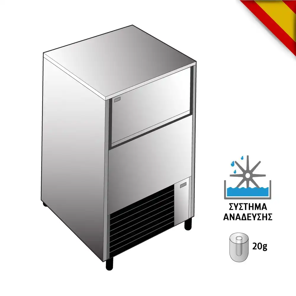 Παγομηχανή με λειτουργία ανάδευσης , παραγωγής 98 Kg & χωρητικότητα αποθήκης 37 Kg , ITV Ισπανίας. Ιδανική για σκληρά νερά.