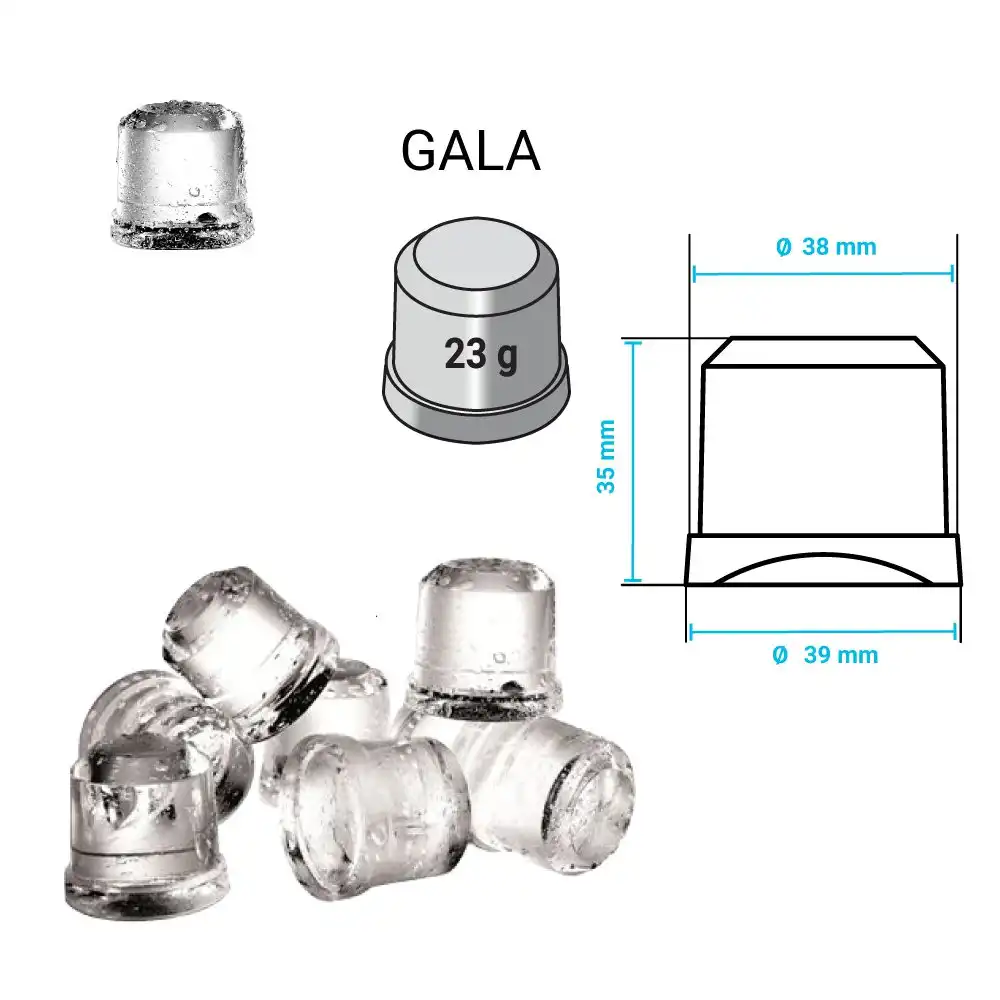 | Παγάκι συμπαγές | 22 gr (39Ø x 35h mm) |