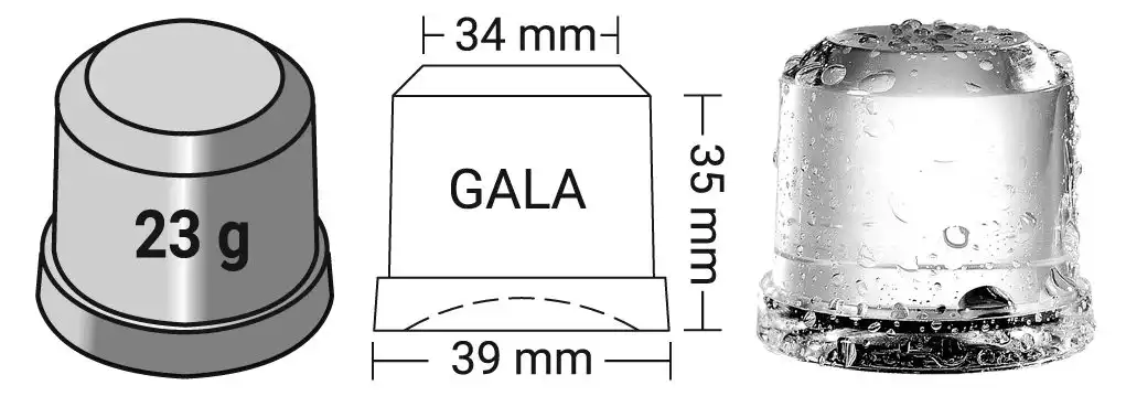 | Παγάκι συμπαγές | 23 gr (35Ø x 35h mm) |