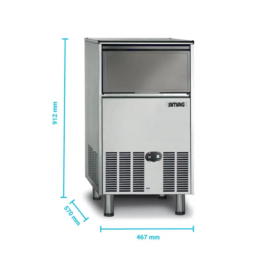 Παγομηχανή ψεκασμού Simag , ημερήσιας παραγωγής 48Kg & ενσωματωμένη αποθήκη 22kg , με παγάκι Gourmet medium , του εργοστασίου Scotsman Ice S.R.L Ιταλίας. Xsafe : Καταστρέφει το 99% όλων των γνωστών βακτηρίων (συμπεριλαμβανομένου & του Covid-19) διατηρώντας ασφαλή τον πάγο που χρησιμοποιείτε.