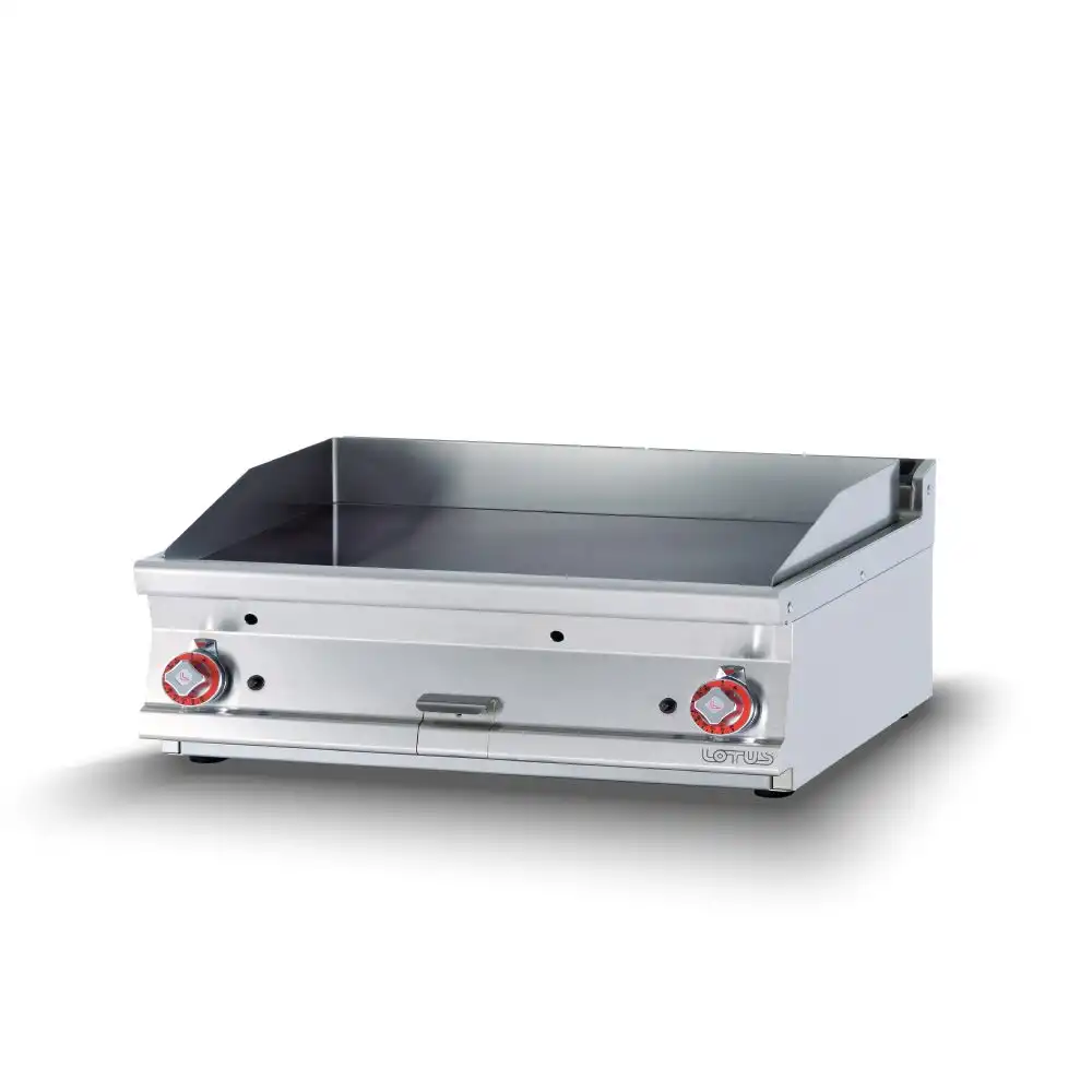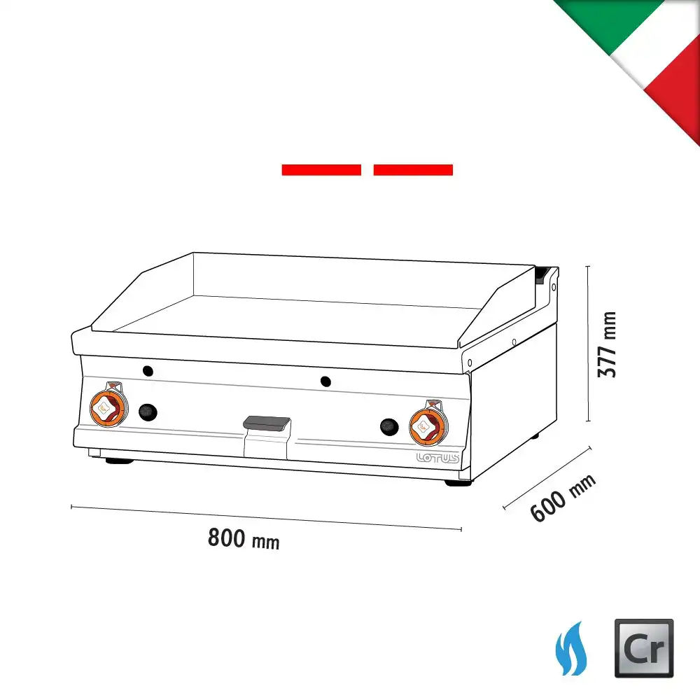 Πλατώ αερίου , διπλό λείο χρωμίου , του εργοστασίου Lotus Ιταλίας. Κατασκευασμένο με χρήση ανοξείδωτου χάλυβα ποιότητας (CrNi 18/10 AISI 304) , με διακόπτες αδιάβροχης ποιότητας (IPX5).