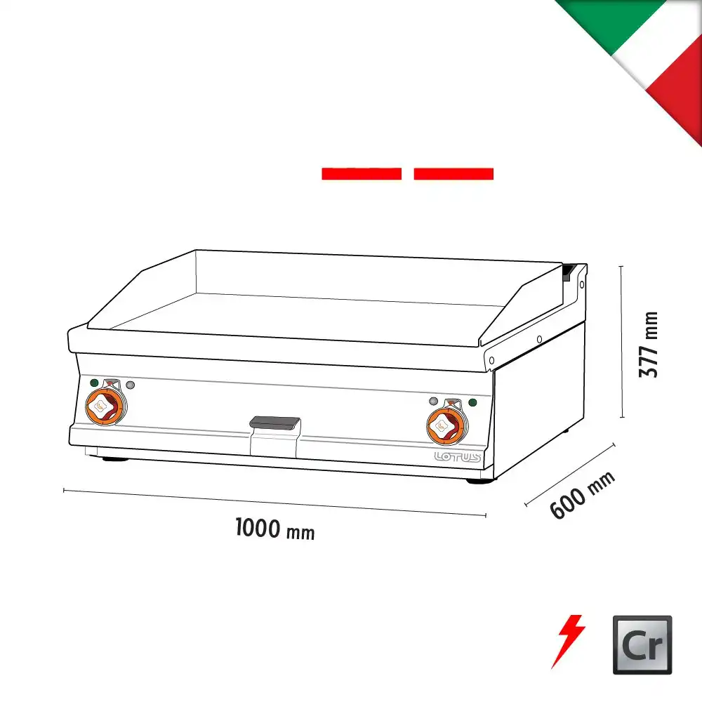 Πλατώ ηλεκτρικό , διπλό λείο χρωμίου , του εργοστασίου Lotus Ιταλίας. Κατασκευασμένο με χρήση ανοξείδωτου χάλυβα ποιότητας (CrNi 18/10 AISI 304) , με διακόπτες αδιάβροχης ποιότητας (IPX5).