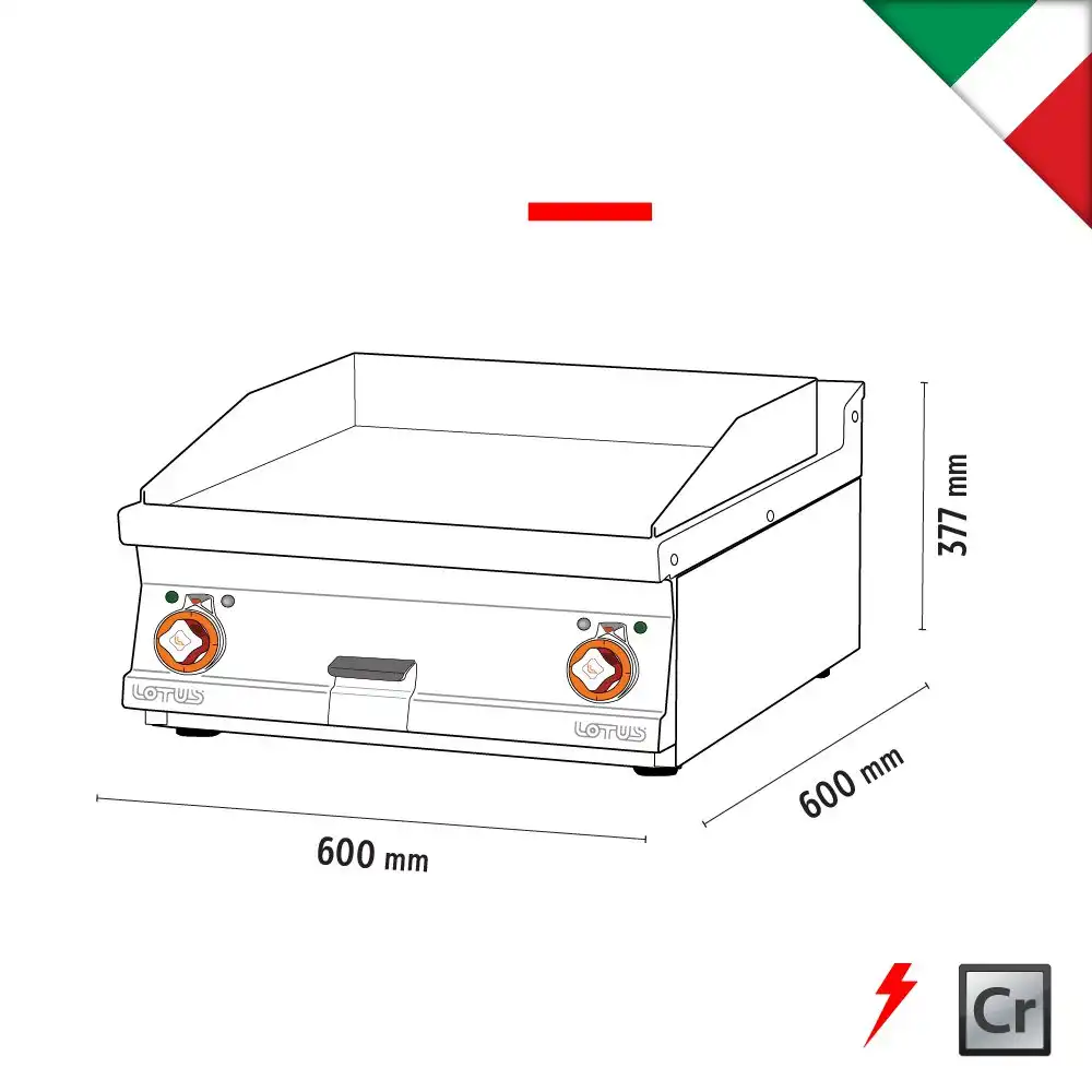 Πλατώ ηλεκτρικό , μεσαίο λείο χρωμίου , του εργοστασίου Lotus Ιταλίας. Κατασκευασμένο με χρήση ανοξείδωτου χάλυβα ποιότητας (CrNi 18/10 AISI 304) , με διακόπτες αδιάβροχης ποιότητας (IPX5).