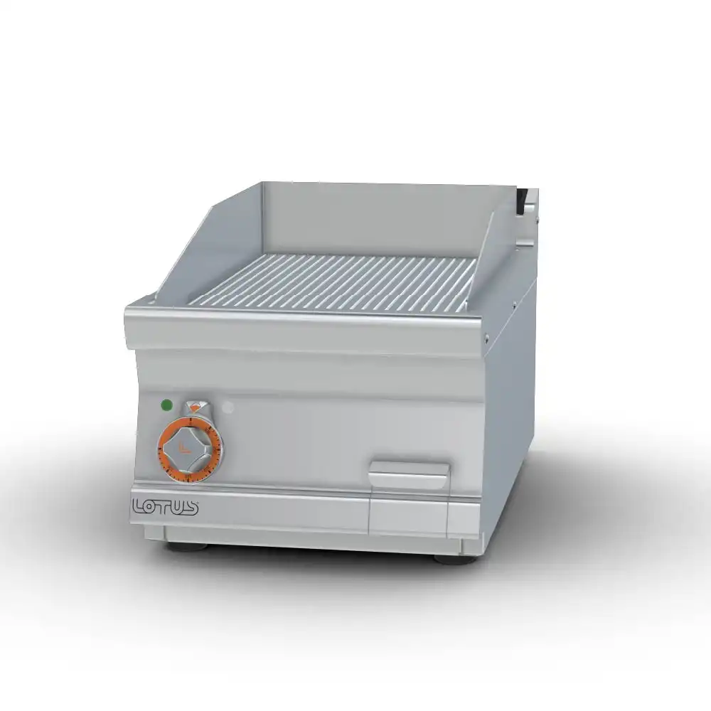 Πλατώ ηλεκτρικό μονό ραβδωτό , του εργοστασίου Lotus Χώρα προέλευσης : Ιταλία Κατασκευασμένο με χρήση ανοξείδωτου χάλυβα ποιότητας (CrNi 18/10 AISI 304) , με διακόπτες αδιάβροχης ποιότητας (IPX5).