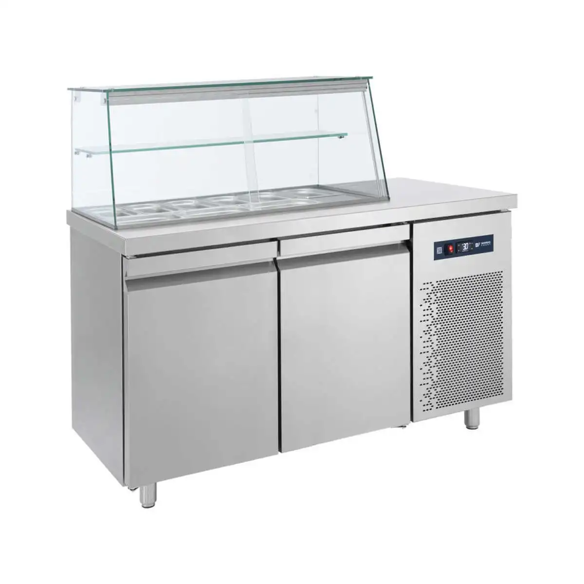 ΨΥΓΕΙΟ ΣΑΛΑΤΩΝ ΜΕ ΒΙΤΡΙΝΑ ΓΙΑ 9 ΛΕΚΑΝΑΚΙΑ GN1/4 ΜΕ ΜΕΓΑΛΕΣ ΠΟΡΤΕΣ (SM 155)