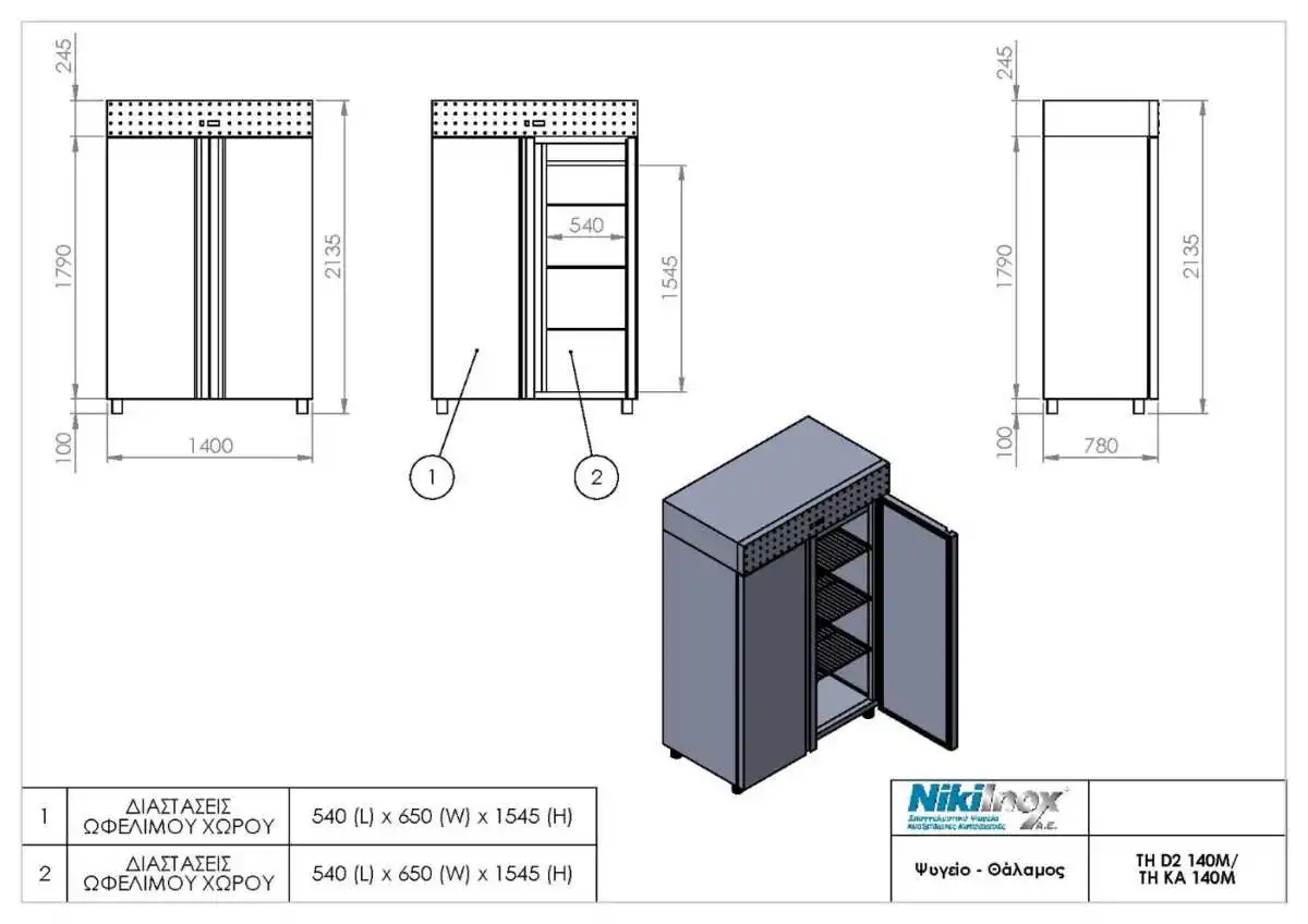 Ο επαγγελματικός ανοξείδωτος θάλαμος συντήρησης “TH D2 140M” συνδυάζει αριστοτεχνία και αποδοτικότητα, καθιστώντας τον ιδανικό για επαγγελματικούς χώρους που χρειάζονται εύκολη πρόσβαση και στιλ.