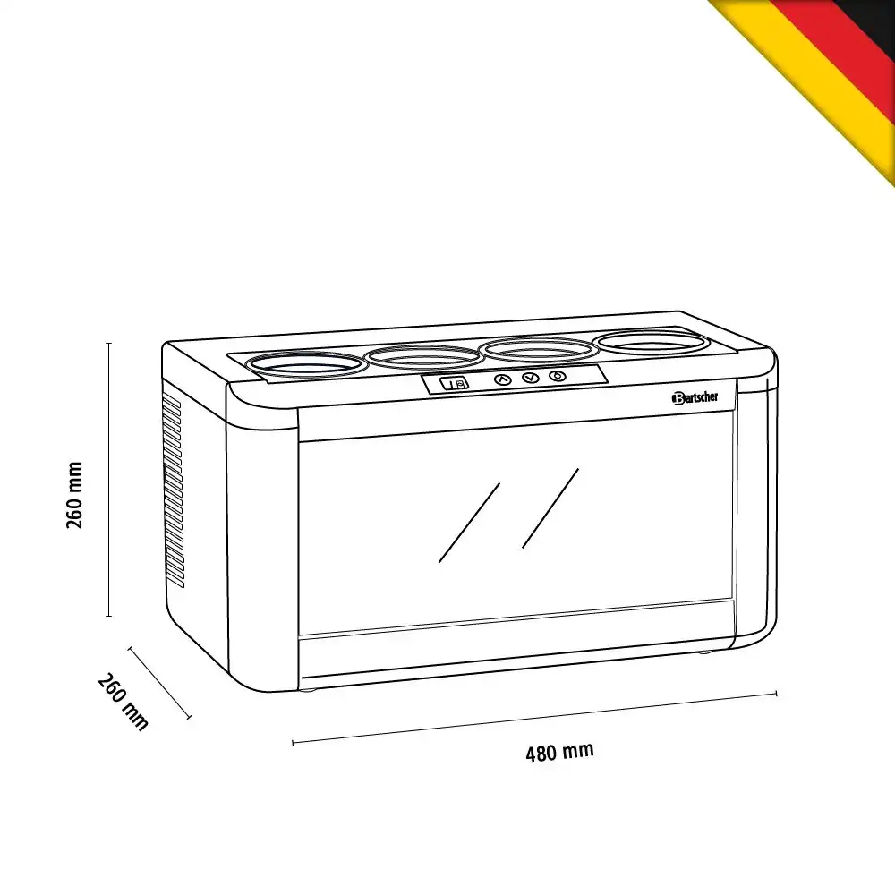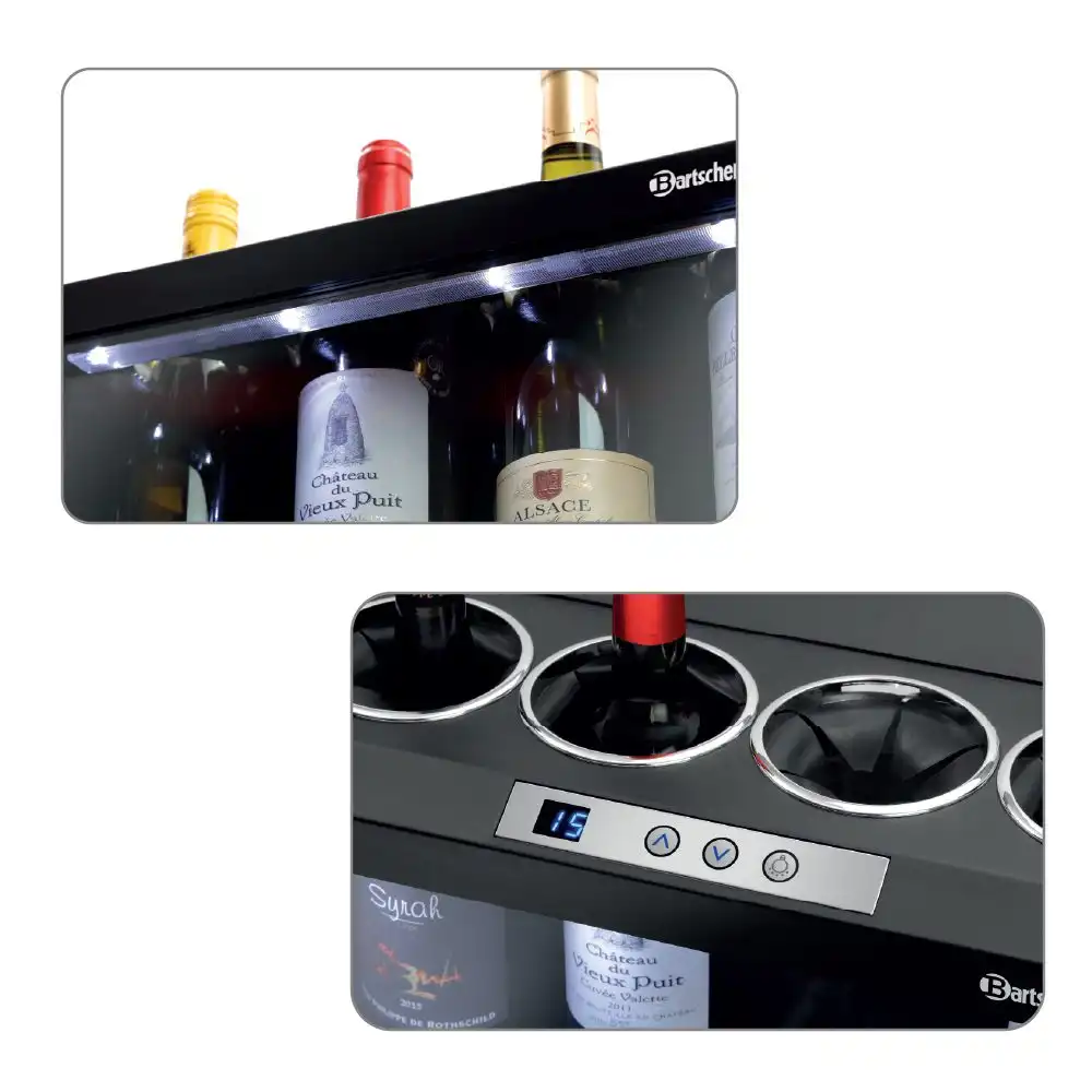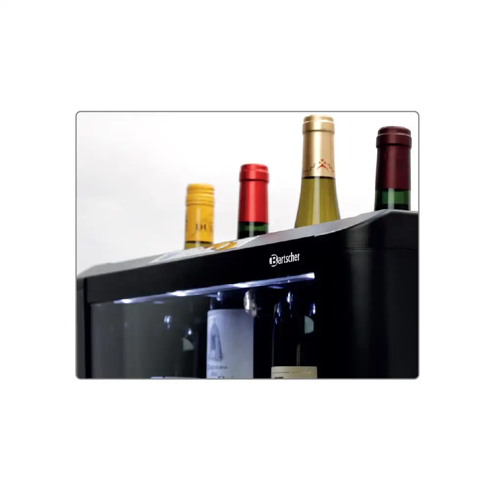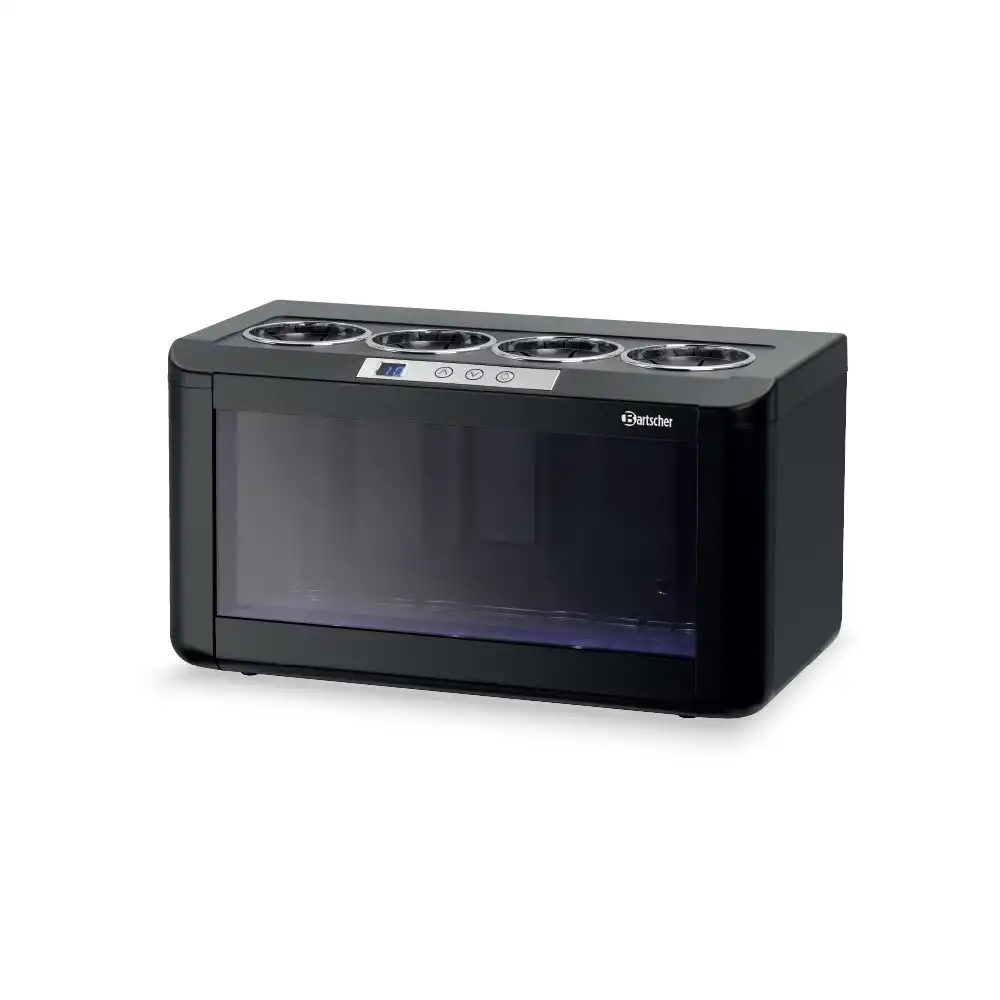 Συντηρητής κρασιών για 4 φιάλες (4FL-100) , Bartscher Γερμανίας. Ο συντηρητής κρασιών 4FL-100 της Bartscher αποτελεί την ιδανική λύση για την διατήρηση λευκού ροζέ ή κόκκινου κρασιού στην θερμοκρασία που επιθυμείτε. Χάρη στις μικρές του διαστάσεις και τον LED φωτισμό του σας βοηθά να παρουσιάσετε με τον καλύτερο δυνατό τρόπο τα κρασιά σας πάνω στο μπουφέ , στο μπάρ ή κατά την δοκιμή κρασιού.