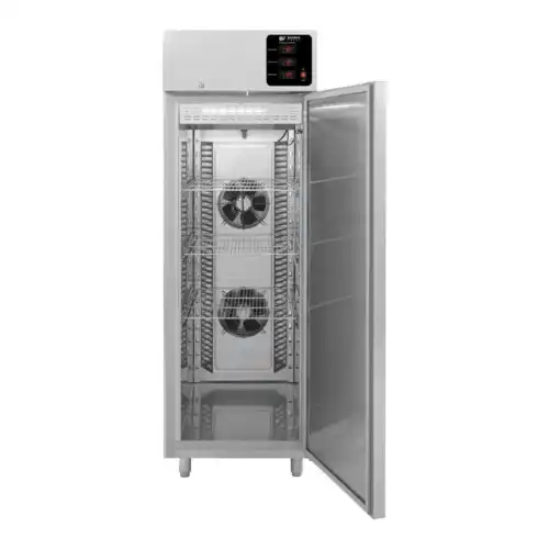 Αποψύχει μεγάλες ποσότητες κατεψυγμένων τροφίμων με ασφάλεια έως τη θερμοκρασία συντήρησης(1-4 °C) σε 4 με 6 ώρες Αυτόματη έναρξη λειτουργίας Απόψυξης σύμφωνα με τη θερμοκρασία του προϊόντος Αυτόματη λειτουργία συντήρησης του προϊόντος όταν αυτό αποψυχθεί Κατασκευασμένο εσωτερικά και εξωτερικά από ανοξείδωτο χάλυβα Ράμπα για τρόλεϊ τροφίμων Μόνωση με οικολογική πολυουρεθάνη πάχους 7 cmστο σώμα και 8 cm στο πάτο Πάτος με υγειονομικές γωνίες Πόρτα με αυτόματη επαναφορά Τερματικός διακόπτης που σταματάει την λειτουργία του στοιχείου με το άνοιγμα της πόρτας Κλειδαριά στην πόρτα Φρέον οικολογικό Αισθητήρας καρφί για μέτρηση της θερμοκρασίας στο πυρήνα των τροφίμων Μεγάλη ροή αέρα για γρηγορότερη απόψυξη Δυνατότητα ρύθμισης θερμοκρασιών απόψυξης και συντήρησης