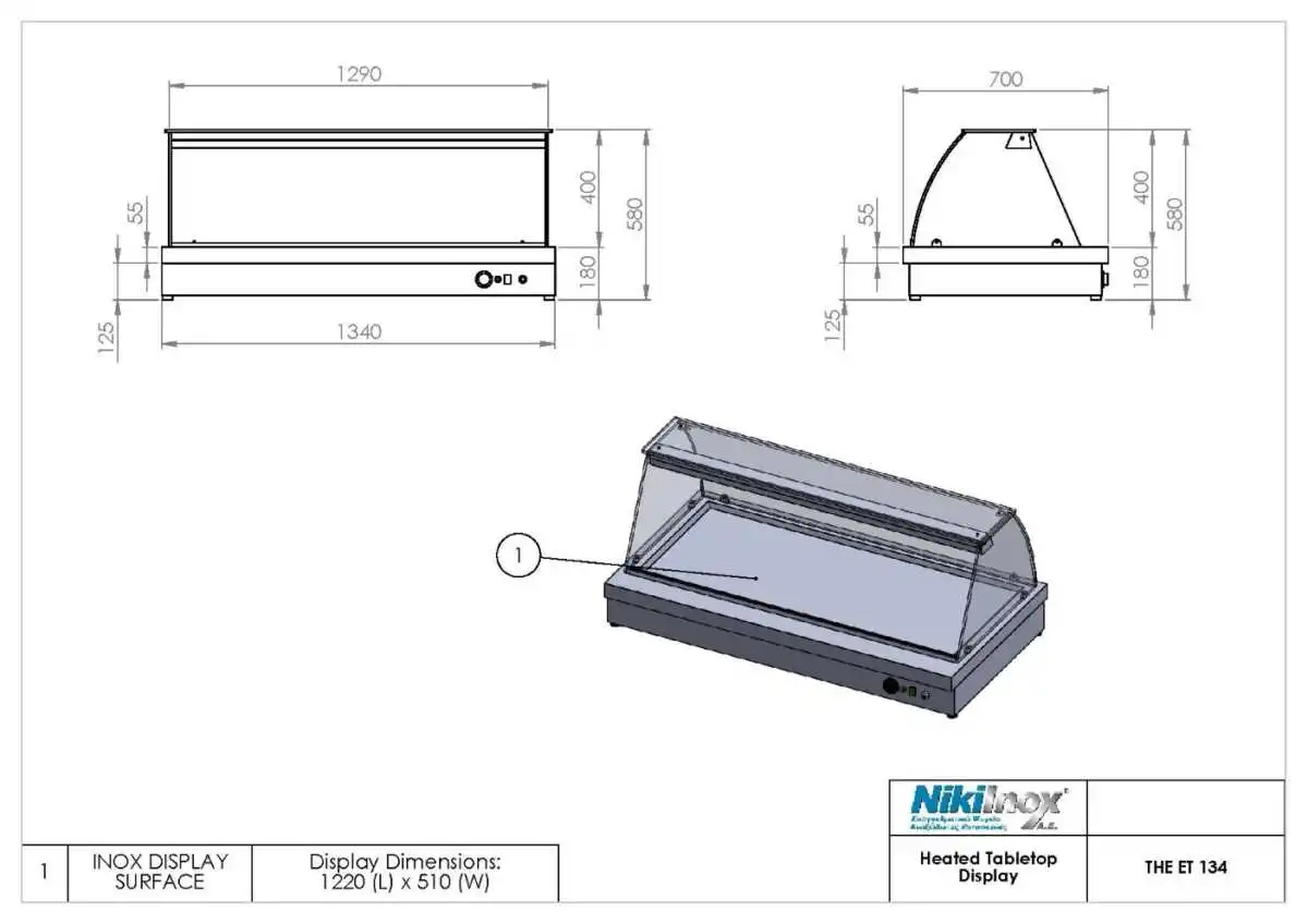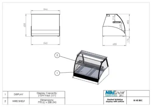 Επιτραπέζια βιτρίνα θερμαινόμενη με αέρα BI HE 80C (BCBI.68080H.21)