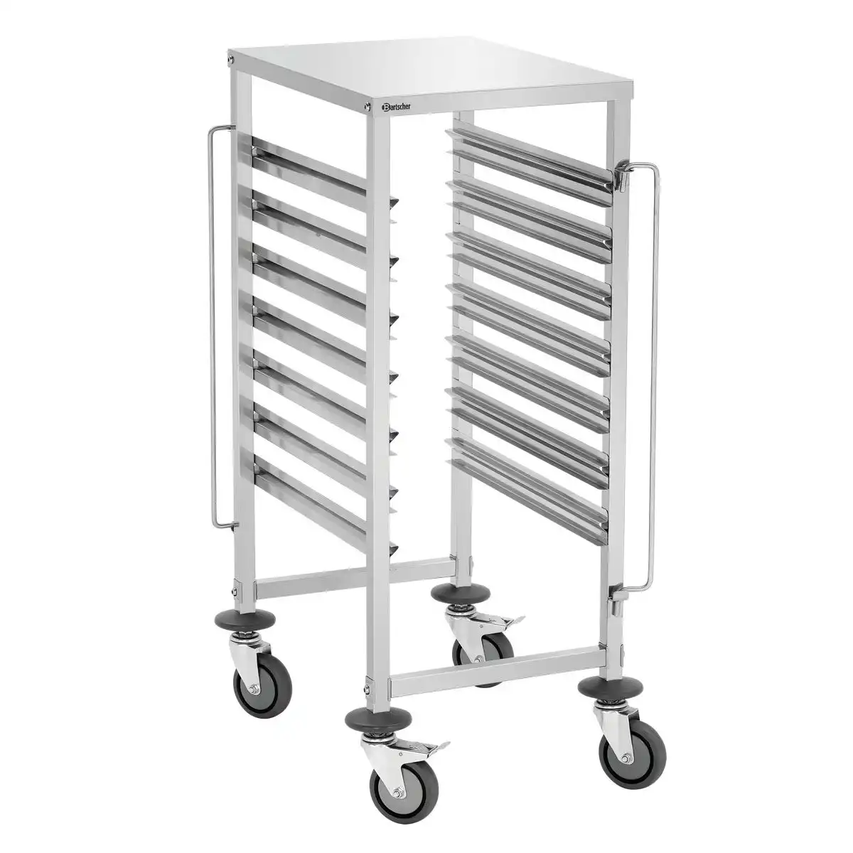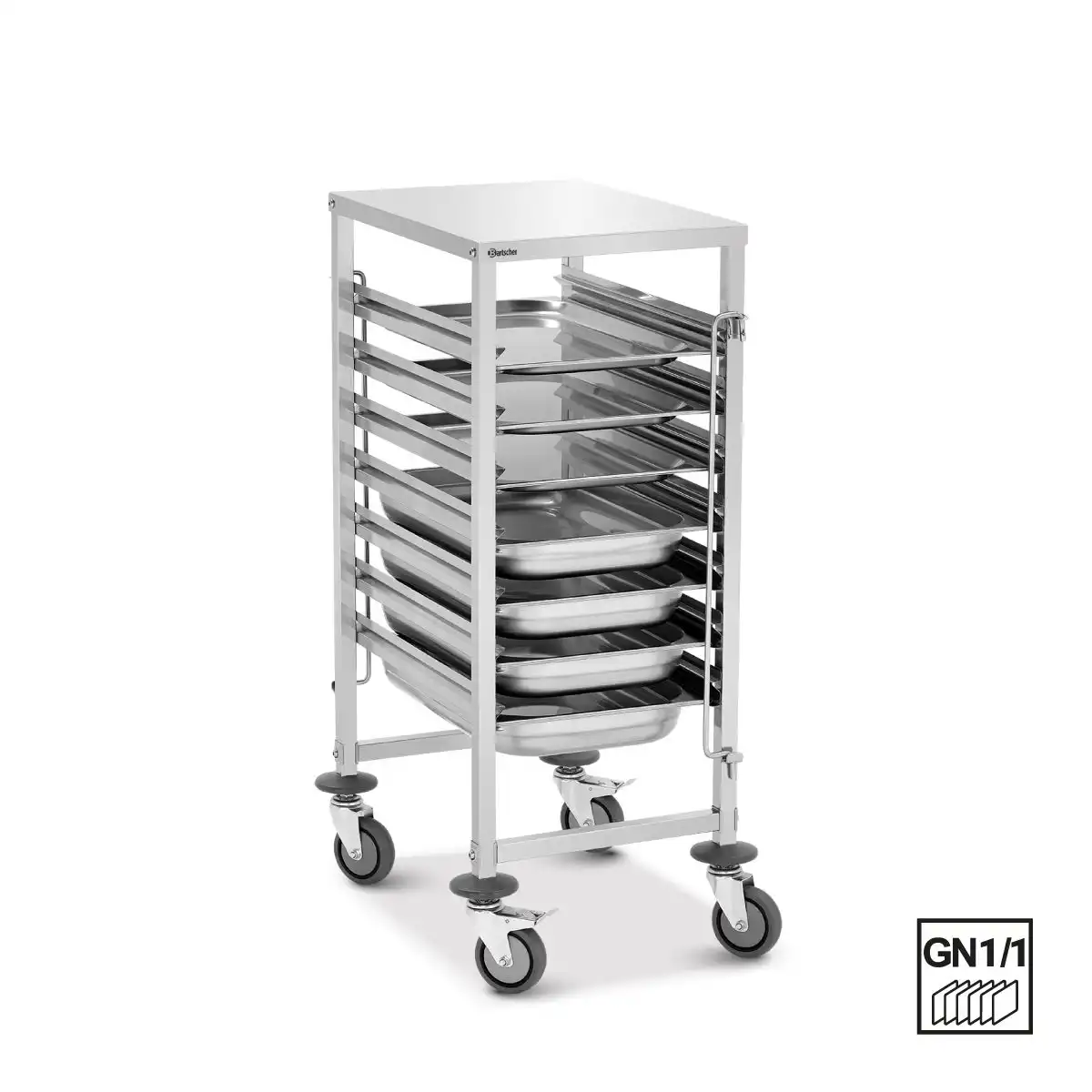 Trolley προτύπων εστίασης (AGN700-1/1) , 7 επιπέδων , Bartscher Γερμανίας. Καρότσι μεταφοράς με 7 θέσεις τοποθέτησης και πρόσθετη ωφέλιμη επιφάνεια τοποθέτησης. Η ασφάλεια των δοχείων και από τις δύο πλευρές εμποδίζει την ολίσθηση των δοχείων.