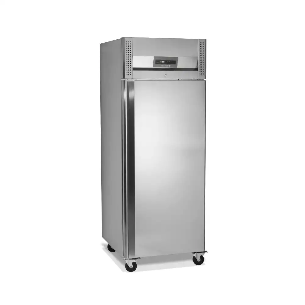 Τυφλή κατάψυξη επιδαπέδια , χωρητικότητας 520 lt , Tefcold Δανίας. Πόρτα με σύστημα αυτόματης επαναφοράς & κλειδαριά Εξ ολοκλήρου Inox κατασκευή Βεβιασμένη ψύξη Δυνατότητα αναστροφής φοράς πόρτας 4 ρόδες μεγάλης αντοχής , οι 2 με φρένο