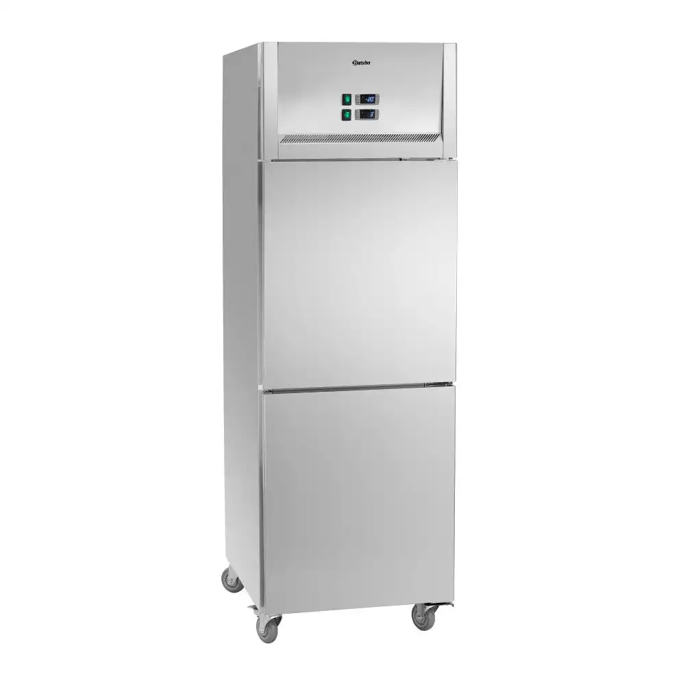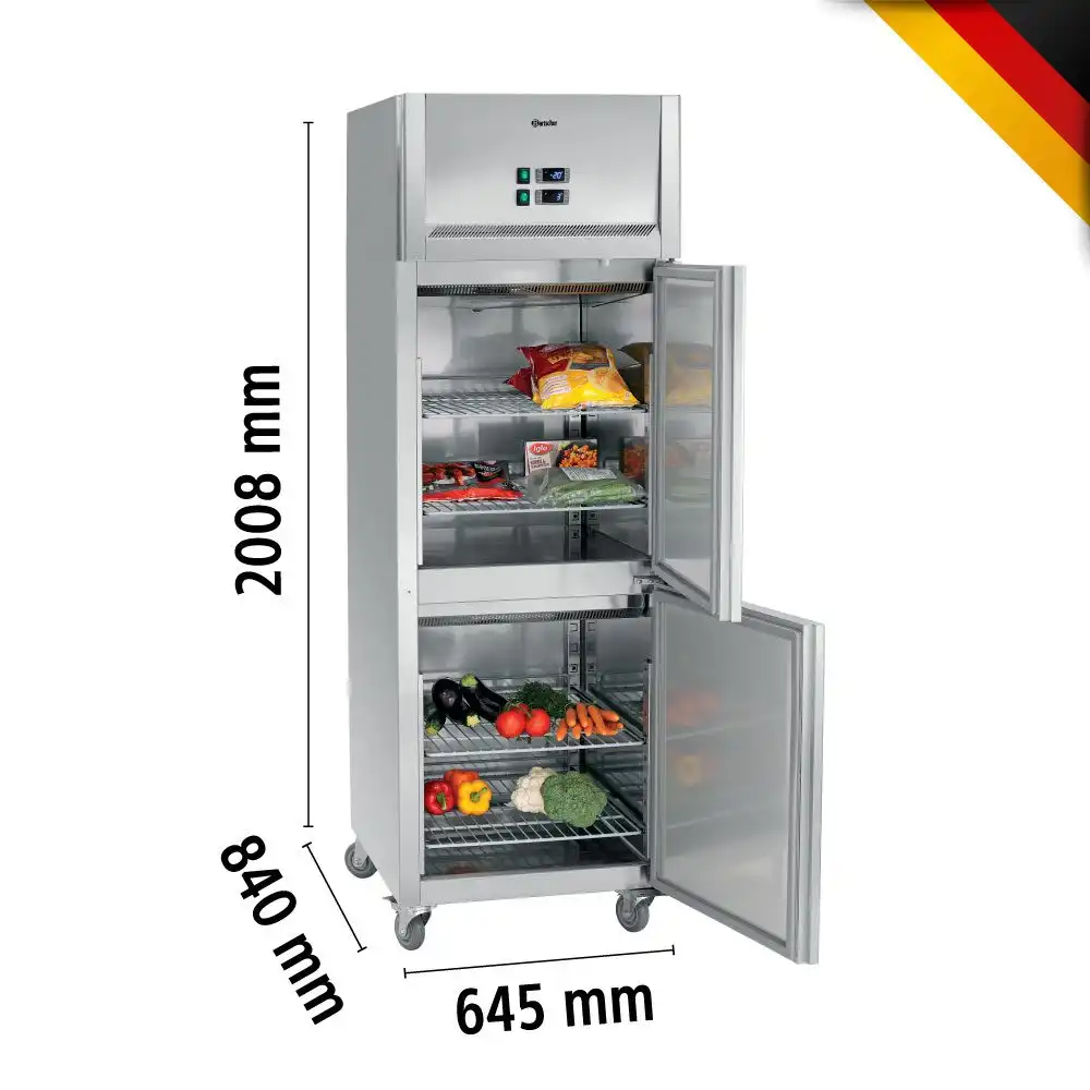 Τυφλή συντήρηση – κατάψυξη , χωρητικότητας 484 lt βεβιασμένης ψύξης, Bartscher Γερμανίας. Το συγκεκριμένο ψυγείο της Bartscher συνδυάζει την ψύξη και την κατάψυξη και προσφέρει έτσι γρήγορη πρόσβαση στα προϊόντα ψύξης και κατάψυξης με μικρές απαιτήσεις χώρου. Οι ράβδοι απόθεσης με δυνατότητα GN μπορούν να χρησιμοποιηθούν τόσο για τις συνοδευτικές σχάρες όσο και για τα δοχεία GN.