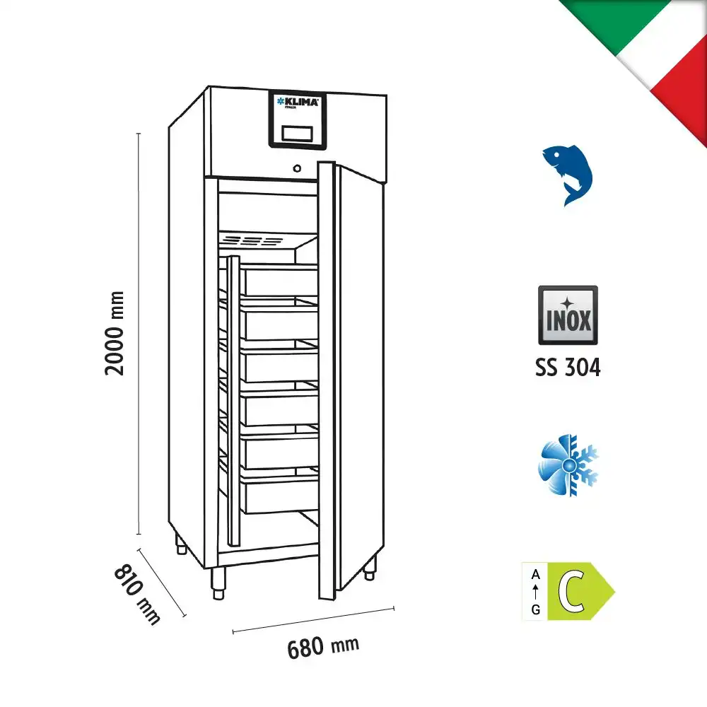 Τυφλή συντήρηση – κατάψυξη επιδαπέδια , χωρητικότητας 537 lt , ιδανική για συντήρηση ψαριών , Klimaitalia Ιταλίας.