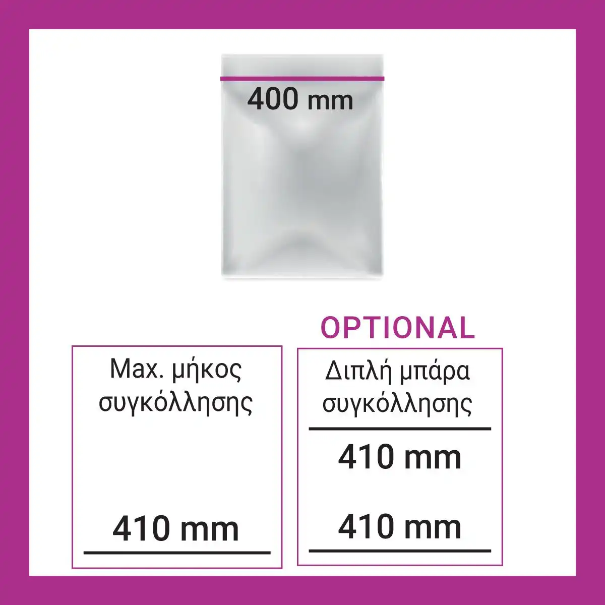| Μέγιστο μήκος σακούλας | 400 mm |