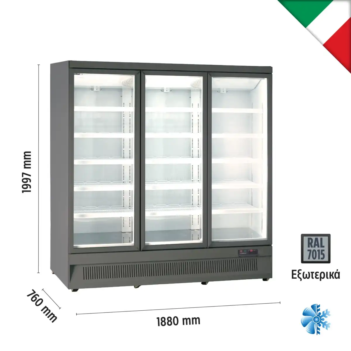 Βιτρίνα κατάψυξης , βεβιασμένης ψύξης με 3 ανοιγόμενες πόρτες , χωρητικότητας 1563 lt. Προμηθευτής: Klimaitalia