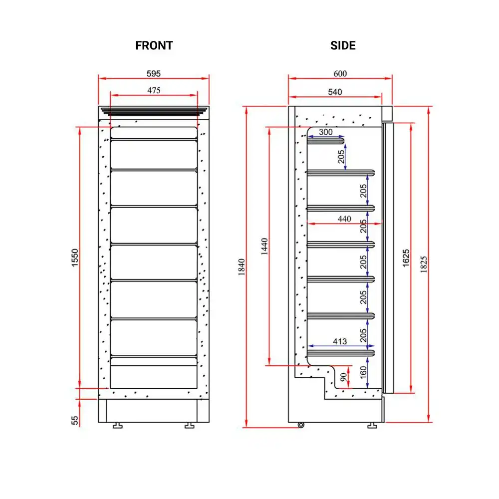 | Εξωτερικές διαστάσεις | 595x640x1840(h)mm |