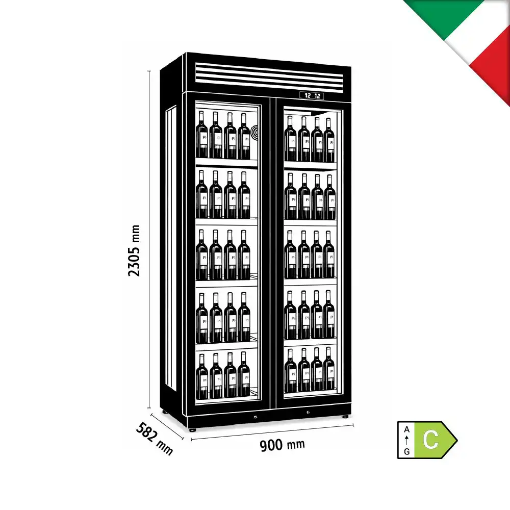 Βιτρίνα συντήρησης κρασιών, με δύο ανοιγόμενες πόρτες χωρητικότητας 695 lt. Προμηθευτής : Klimaitalia