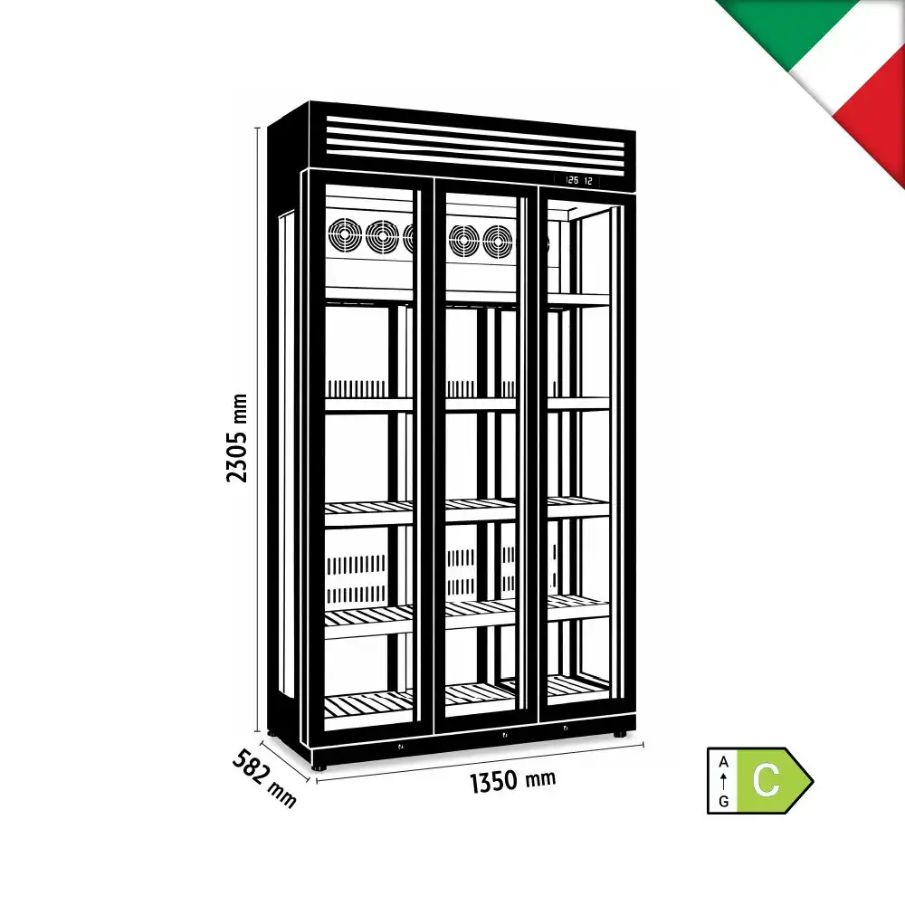 Βιτρίνα συντήρησης κρασιών, με τρεις ανοιγόμενες πόρτες χωρητικότητας 1086lt. Προμηθευτής : Klimaitalia
