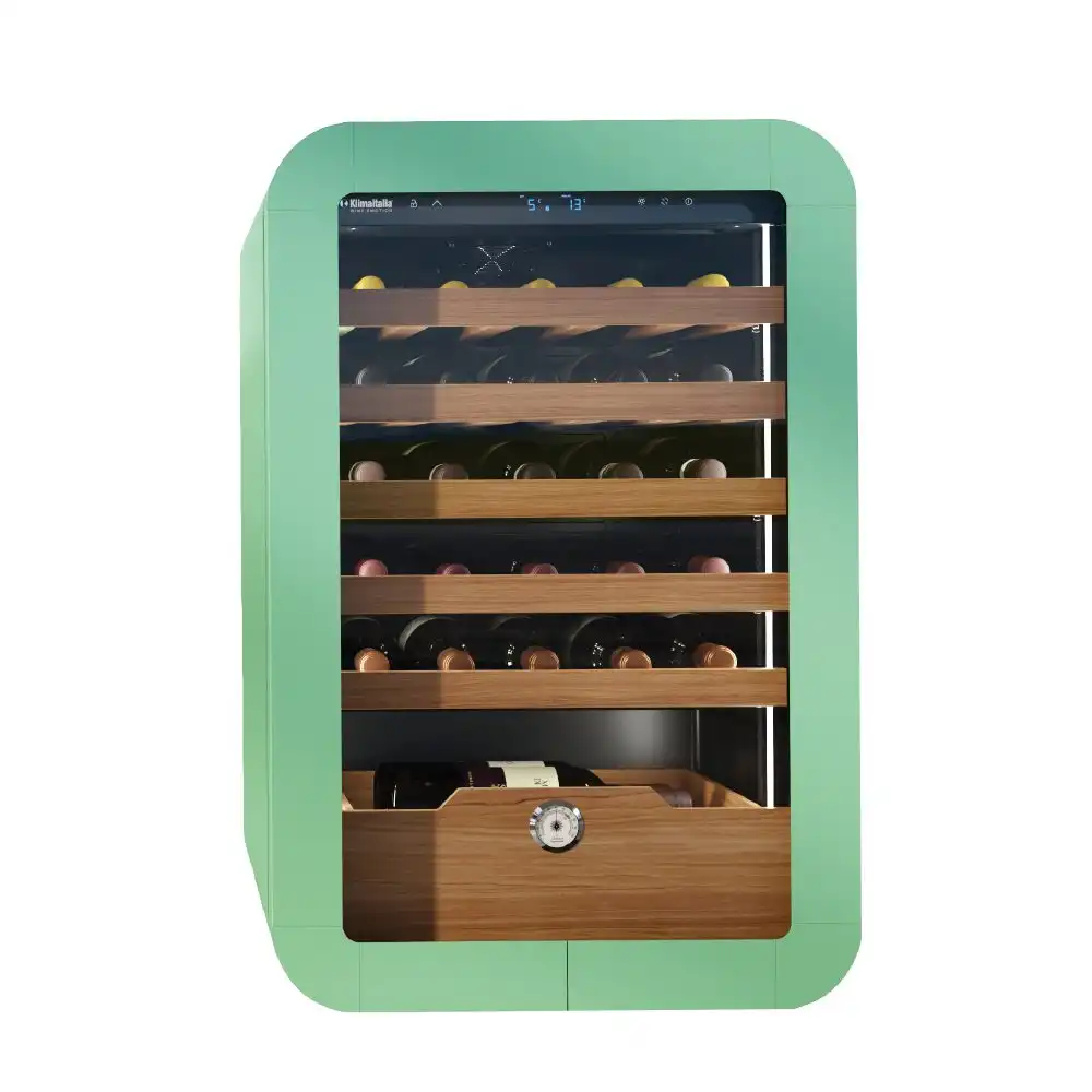 Βιτρίνα συντήρησης κρασιών πράσινου χρώματος , χωρητικότητας 126 lt. Προμηθευτής : Klimaitalia