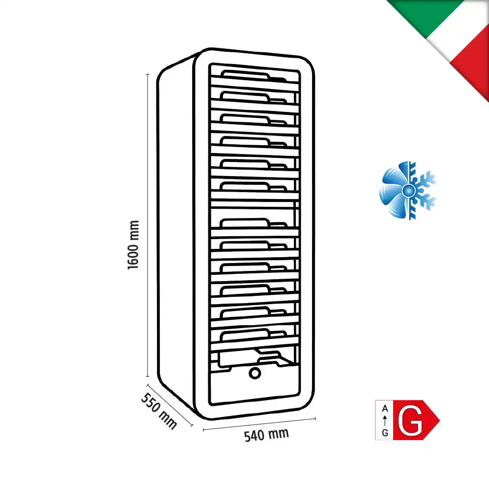 Βιτρίνα συντήρησης κρασιών λευκού χρώματος , χωρητικότητας 268 lt. Προμηθευτής : Klimaitalia