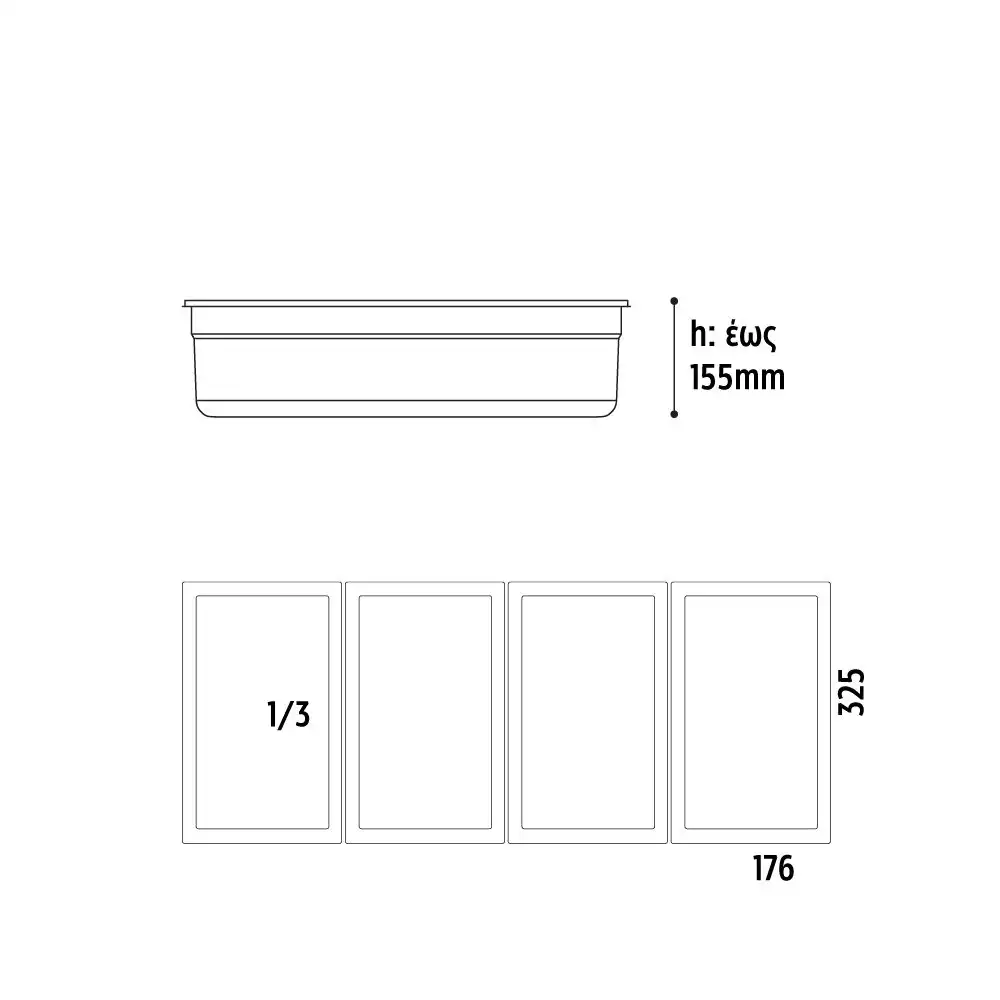 | Αριθμός θέσεων για λεκανάκια GN 1/3 | 4 |
