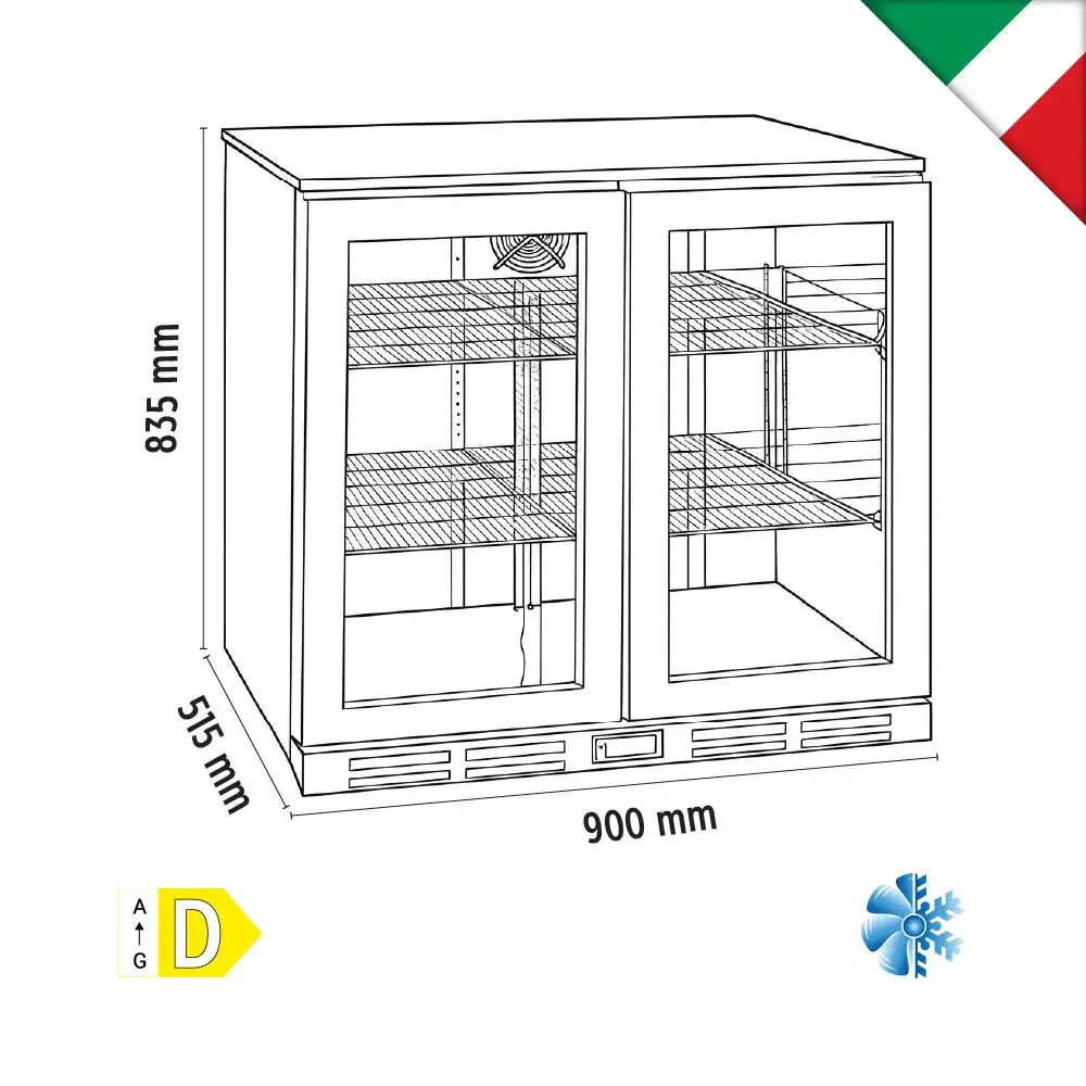Βιτρίνα συντηρησης Back Bar διπλή,με ανοιγόμενες πόρτες Sub Zero COLD BAR 200 BLACK, Klimaitalia Ιταλίας.