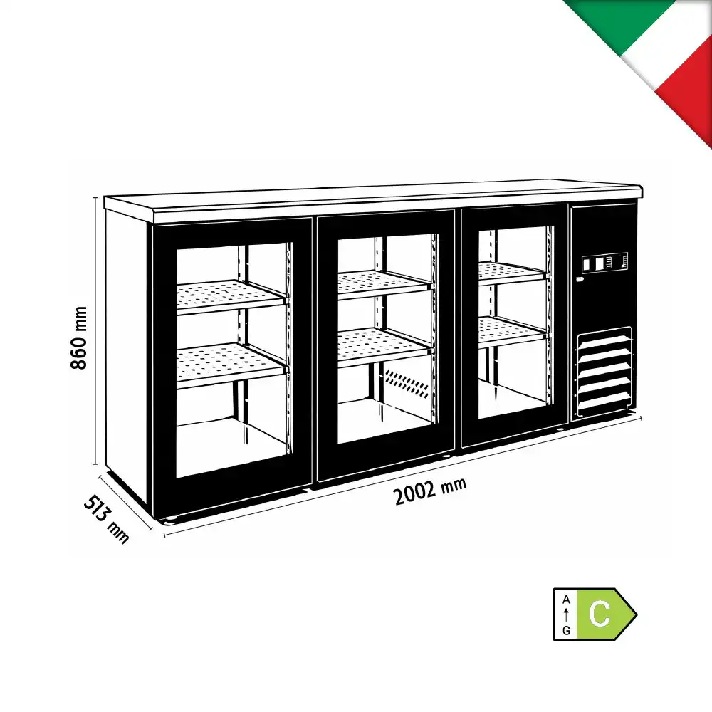 Βιτρίνα συντήρησης τριπλή – Back Bar με ανοιγόμενες πόρτες , βεβιασμένης ψύξης & χωρητικότητας 537lt , Klimaitalia Ιταλίας.